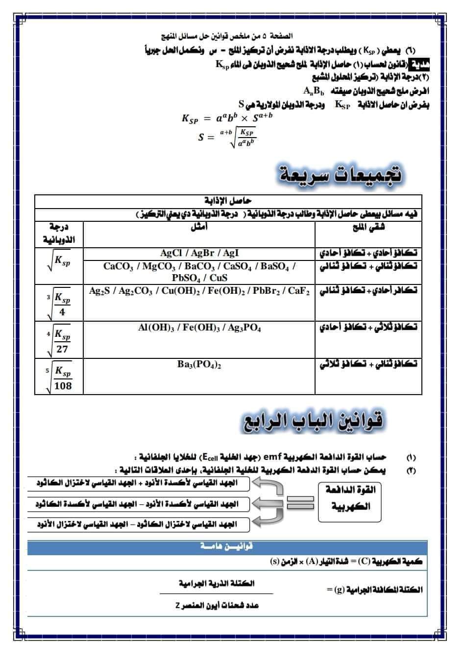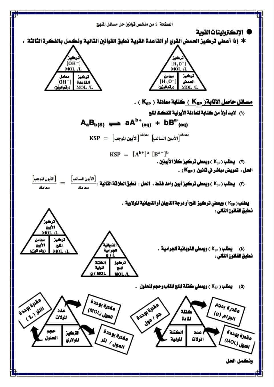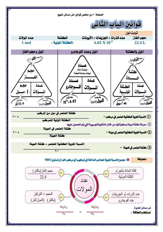 ملخص قوانين حل مسائل منهج الكيمياء للصف الثالث الثانوي
