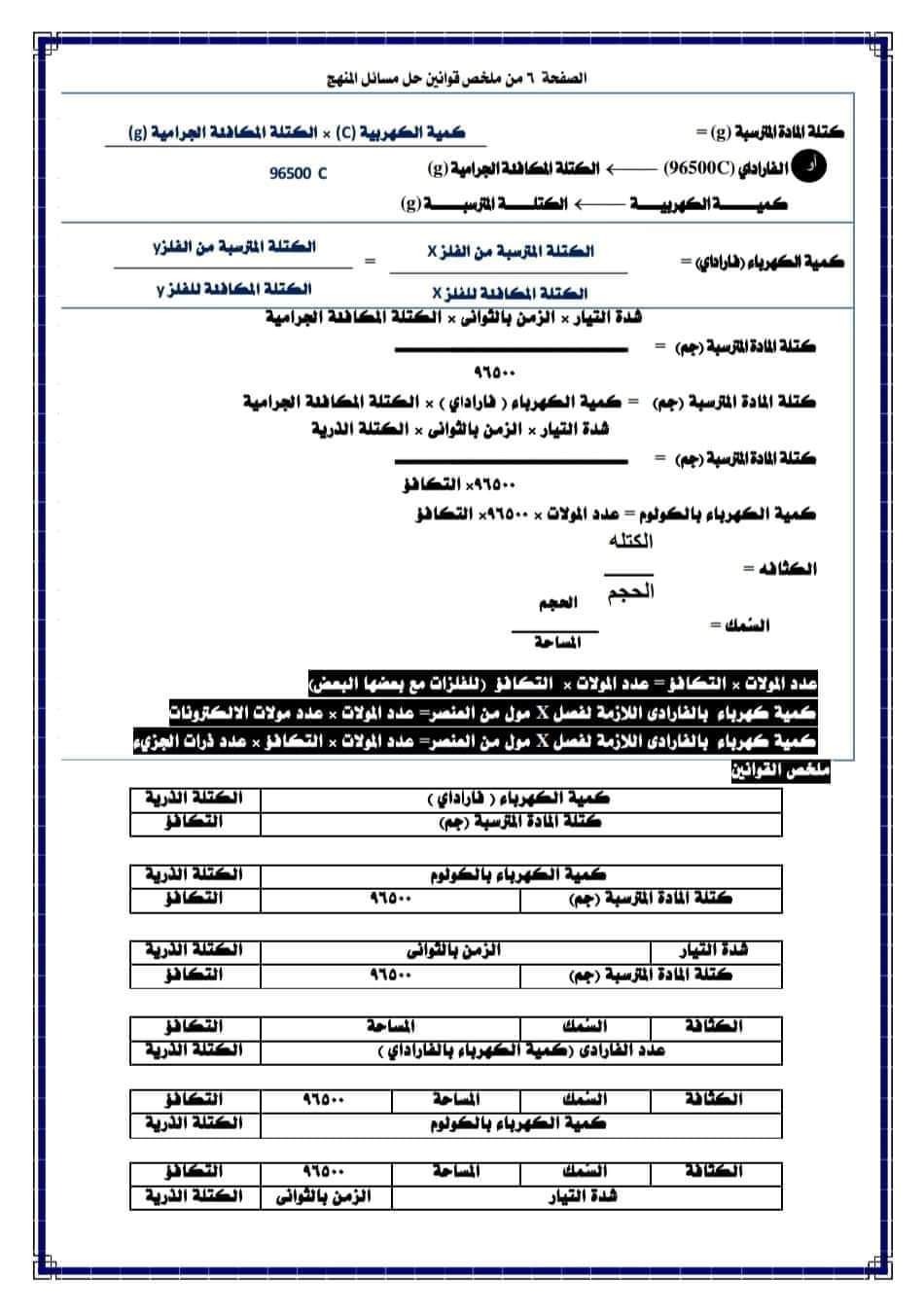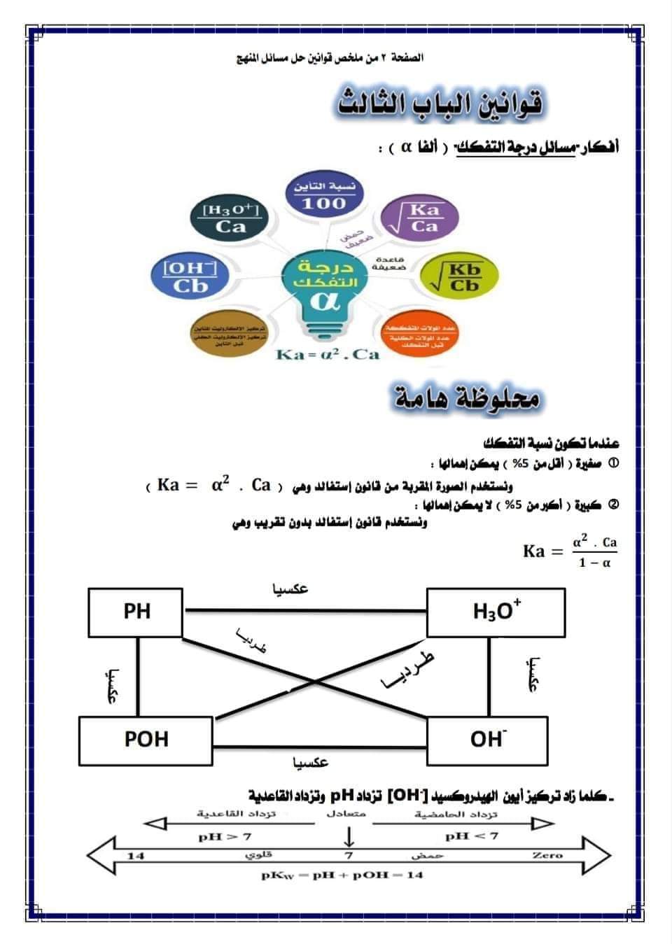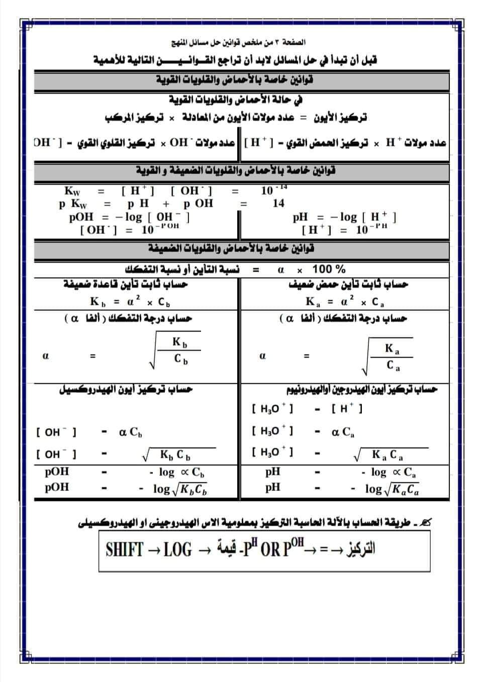 ملخص قوانين حل مسائل منهج الكيمياء للصف الثالث الثانوي