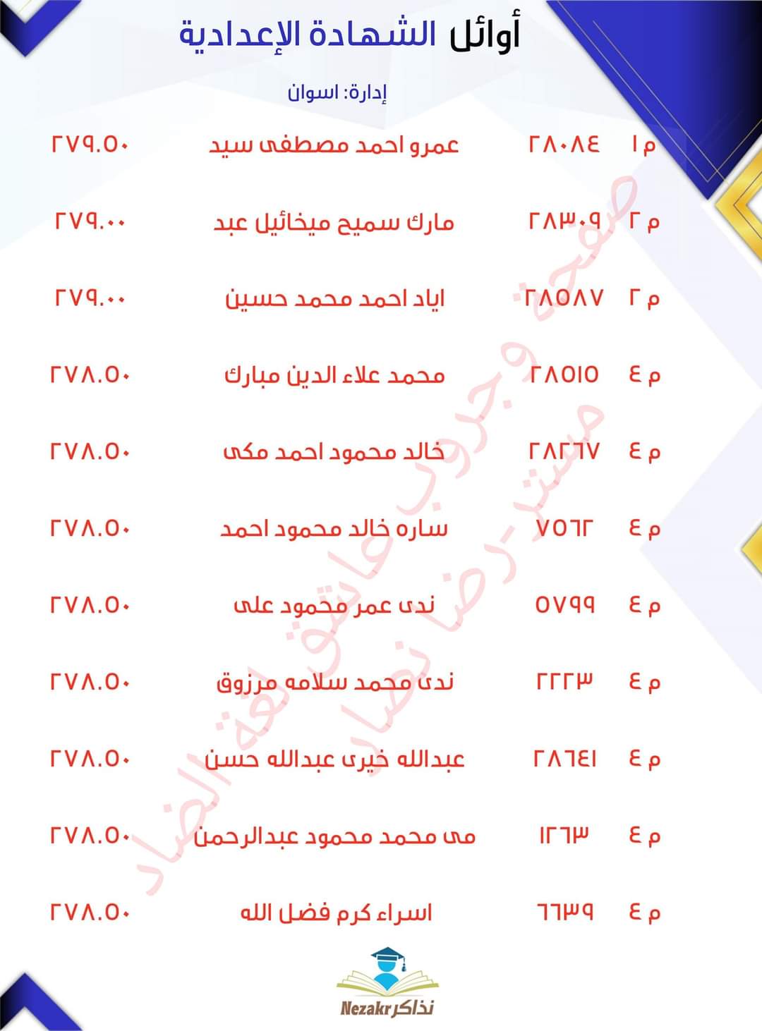 في نتيجة الشهادة الإعدادية بمحافظة أسوان
