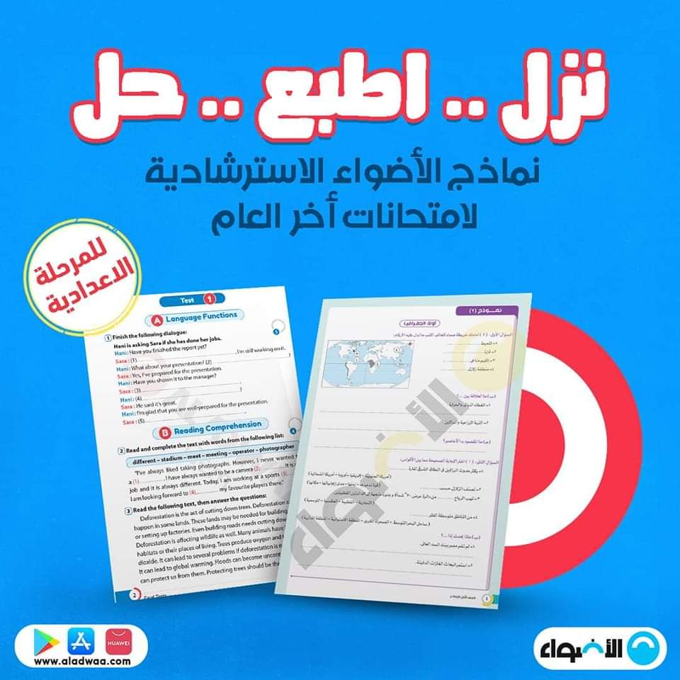 تحميل نماذج الاضواء للمرحلة الاعدادية الترم الثاني 2023
