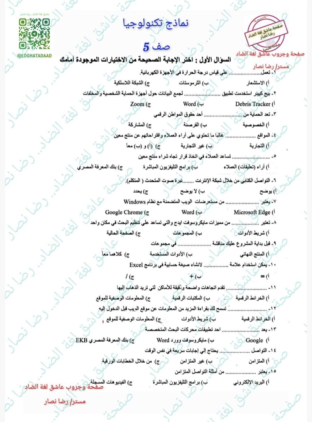 تحميل نماذج الوزارة الاسترشادية تكنولوجيا المعلومات للصف الخامس الابتدائي الترم الثاني 2023