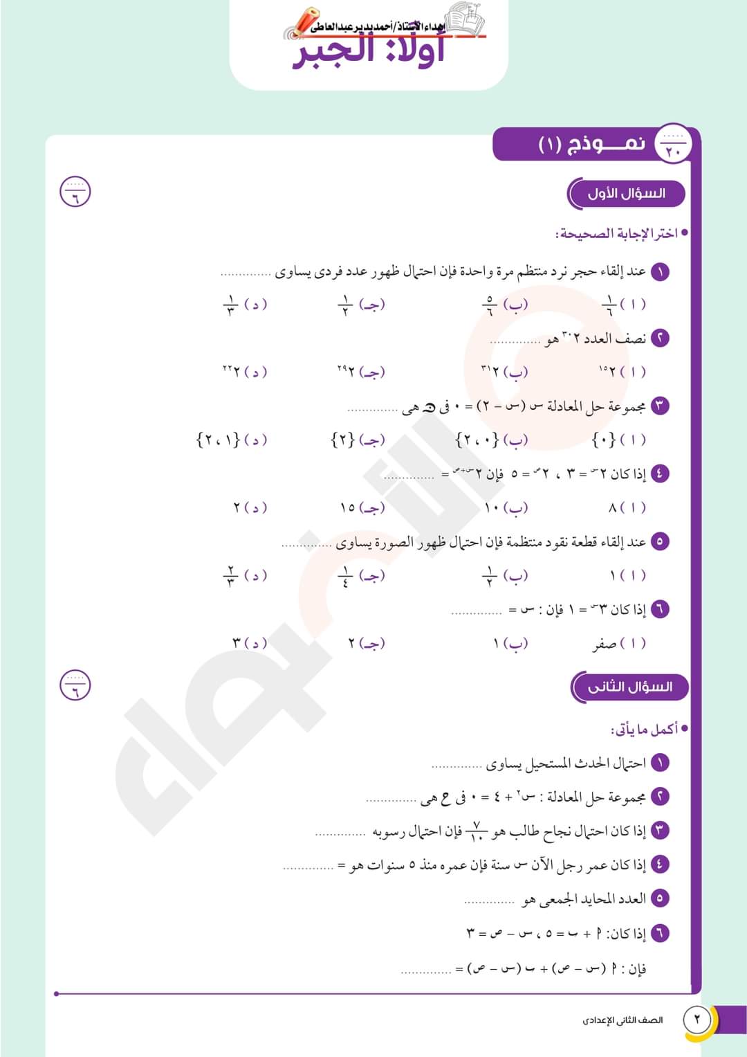نسخة كاملة من نماذج الأضواء للصف الثاني الإعدادي بالإجابة