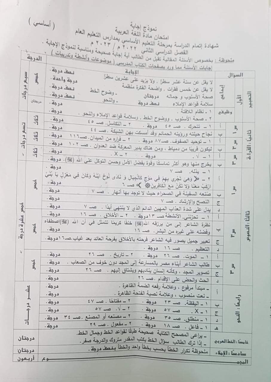 تحميل نموذج الاجابة الرسمي لامتحان اللغة العربية محافظة الجيزة تالتة اعدادي الترم الثاني 2023