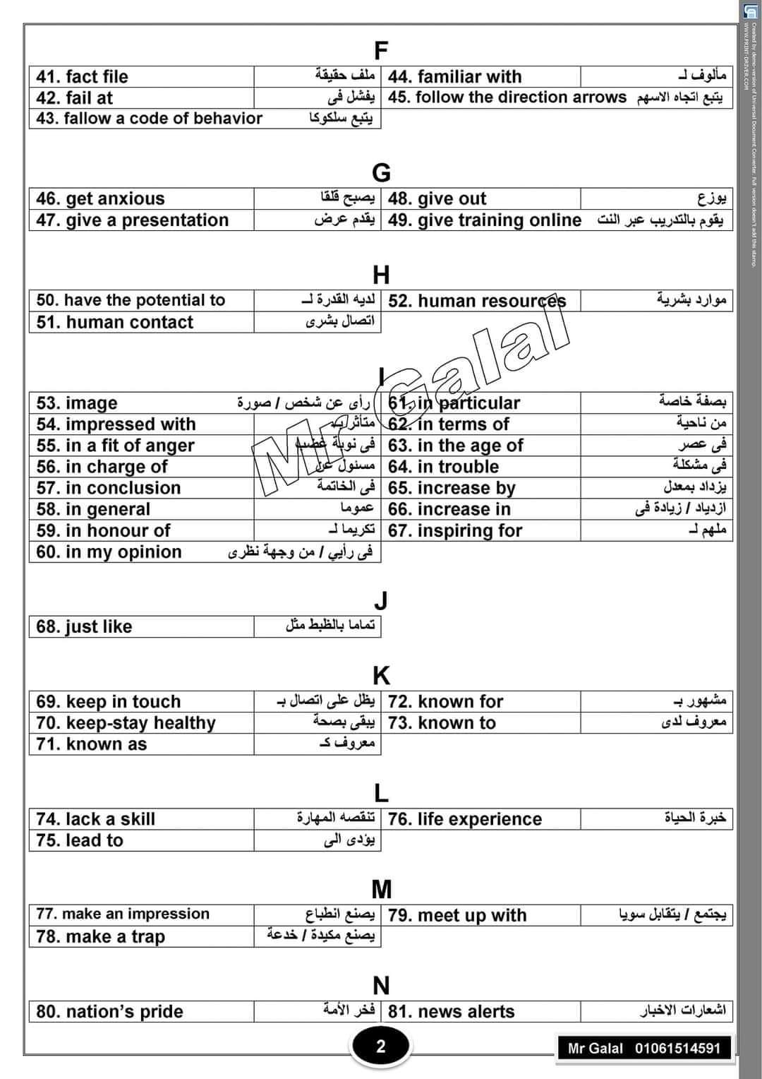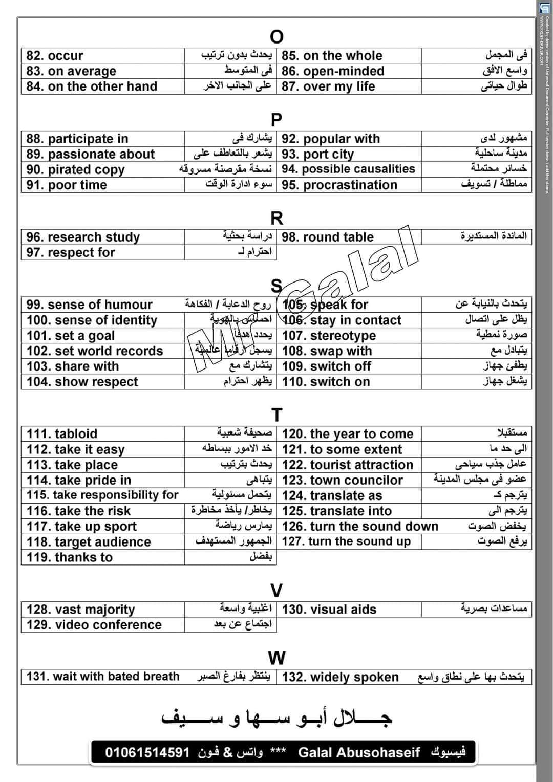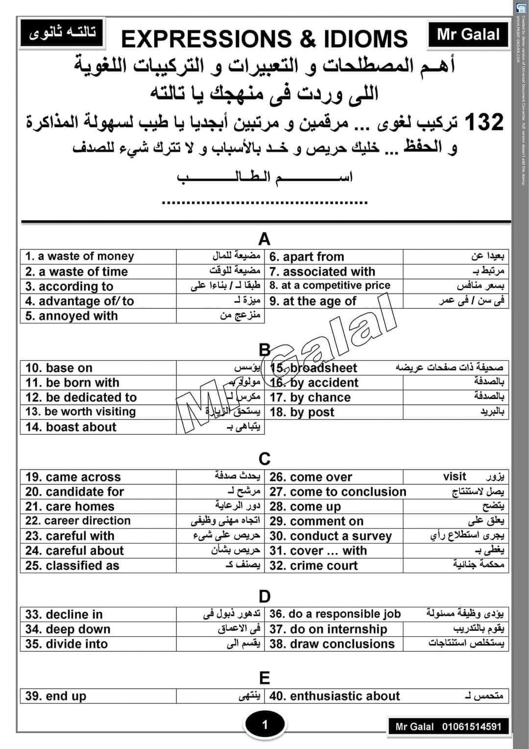 أهم المصطلحات و التركيبات اللغوية اللى وردت فى منهجك … 132 مصطلح … رتبناهم ابجديا و رقمناهم كل حرف على حده … لسهولة مذاكرتهم و حفظهم … فقط 3 صفحات