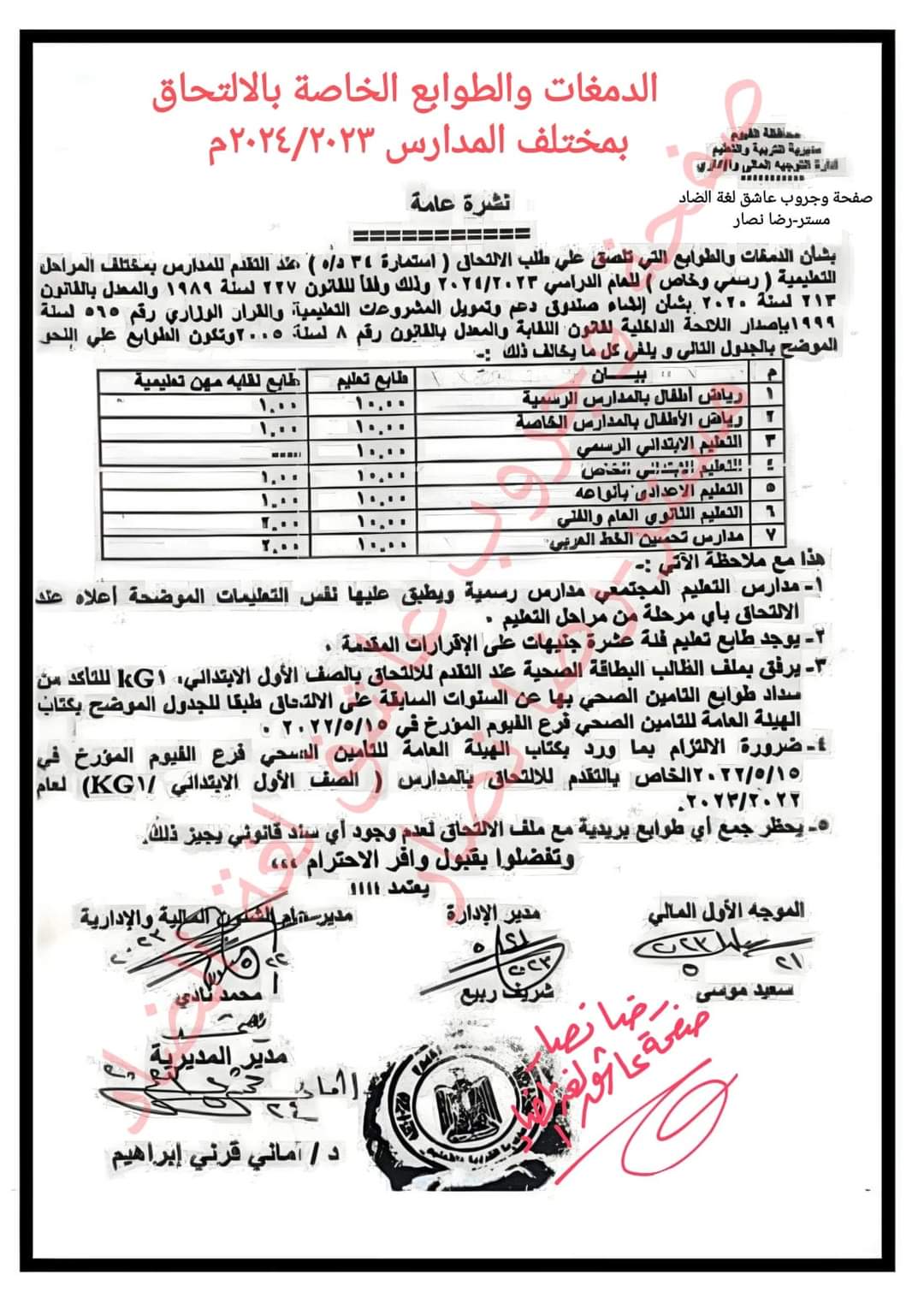 تحميل الدمغات والطوابع المطلوبة لتقديم المدارس للعام الدراسي ٢٠٢٤/٢٠٢٣م