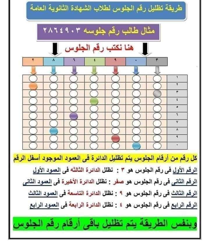 شرح الطريقة الصحيحة لكتابة رقم الجلوس في الامتحان للثانوية العامة 2023