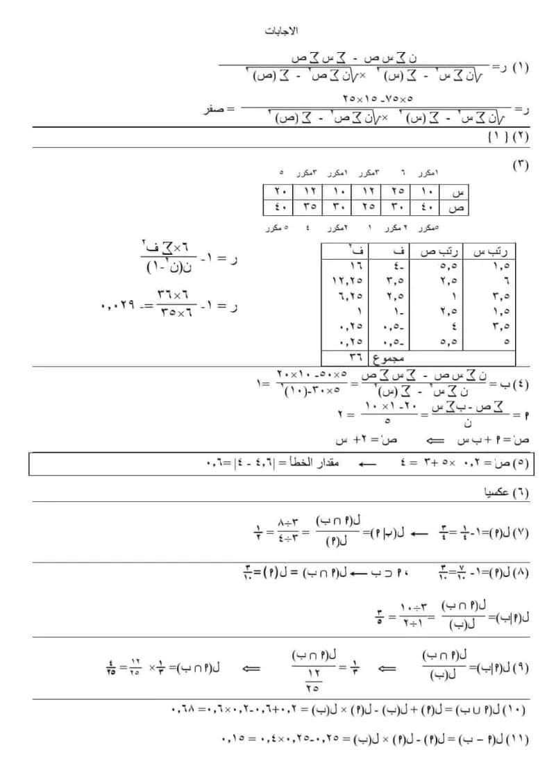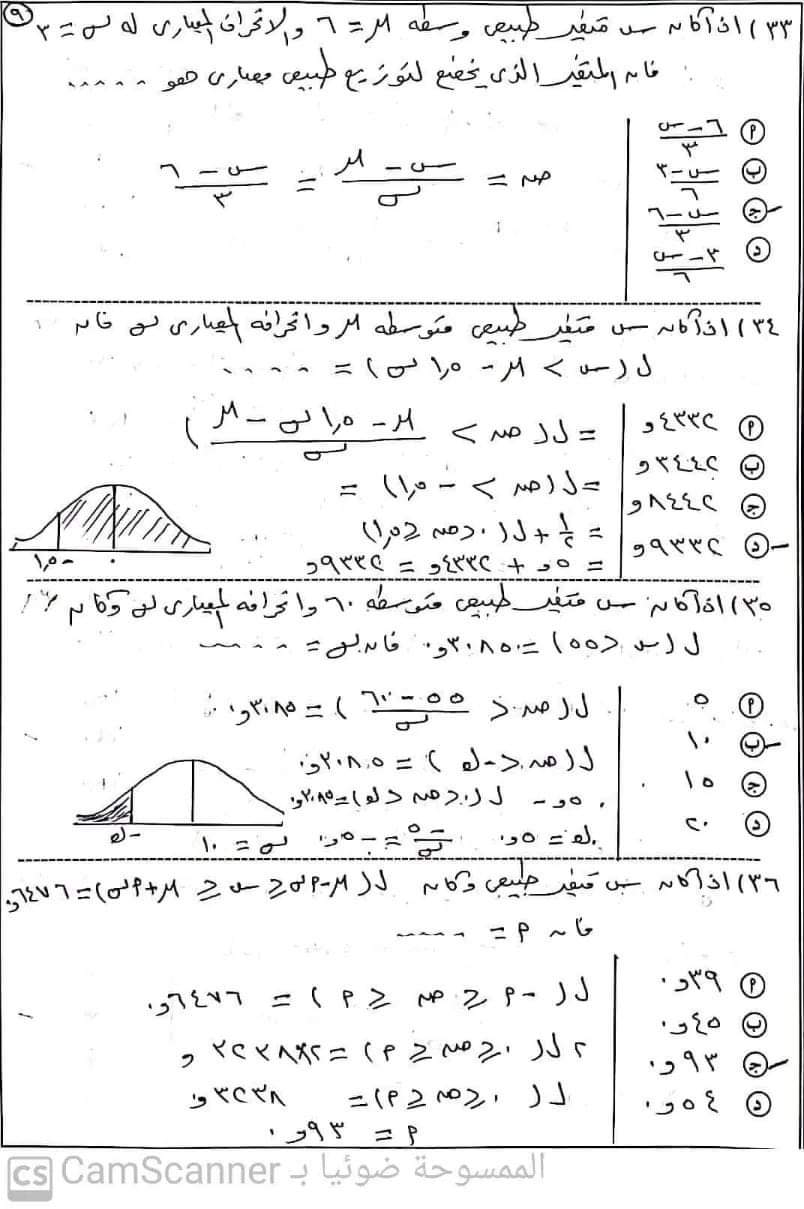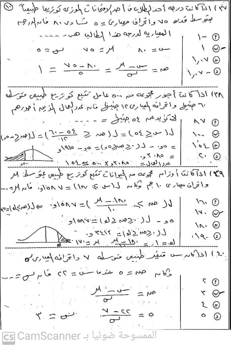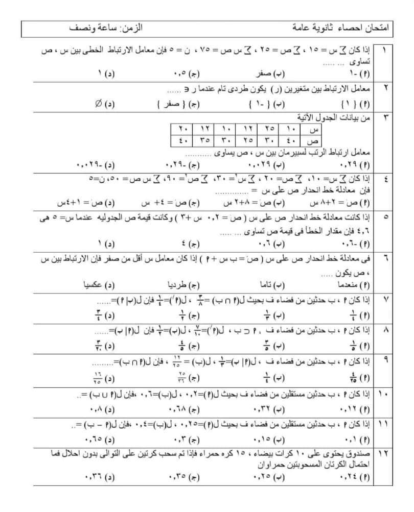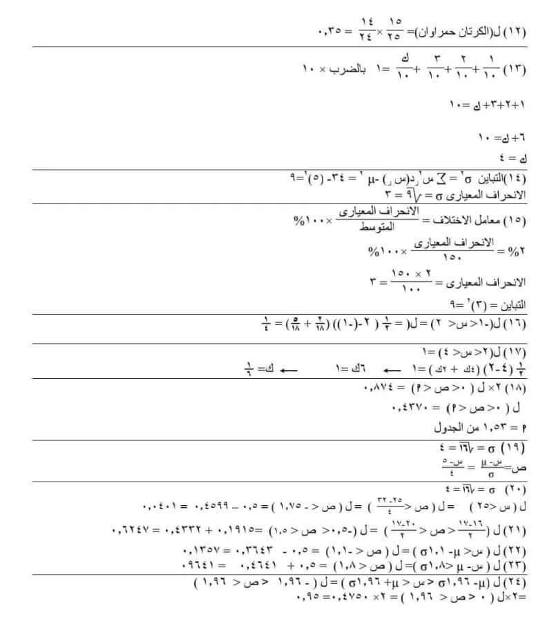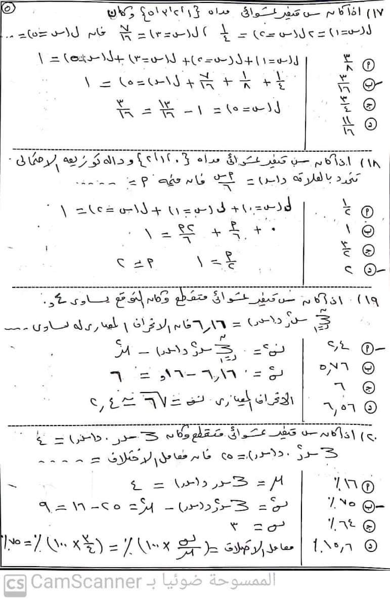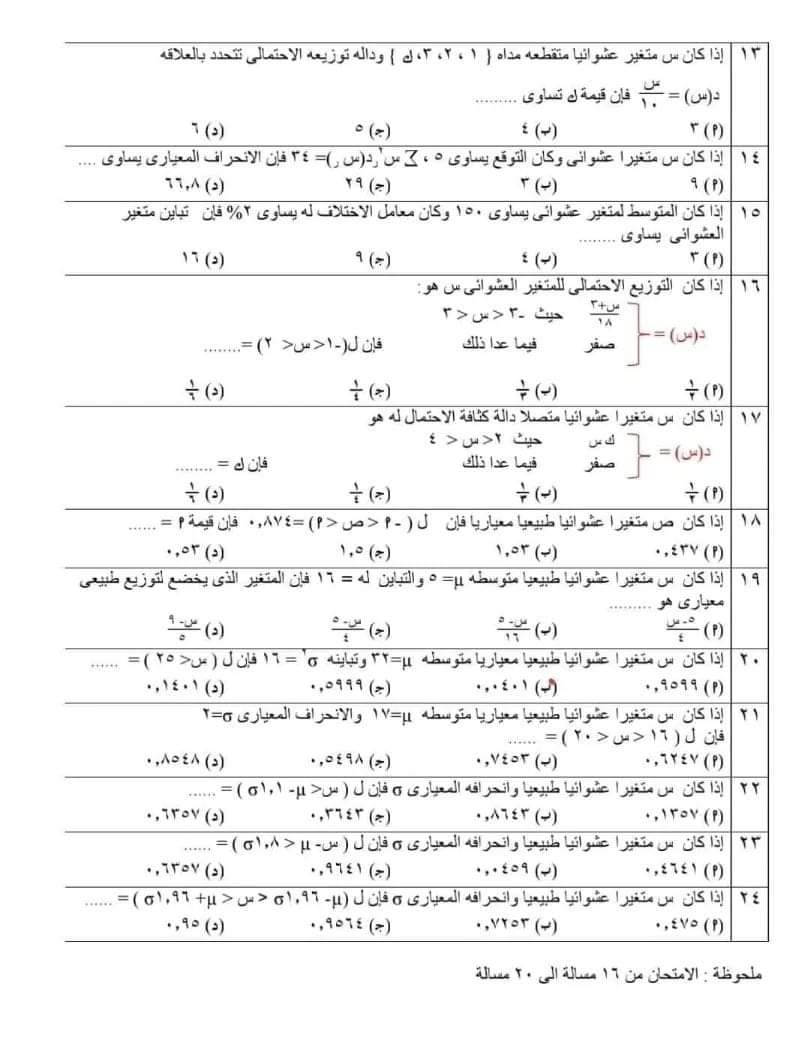 تحميل اهم أسئلة امتحان الإحصاء للصف الثالث الثانوي بالإجابات