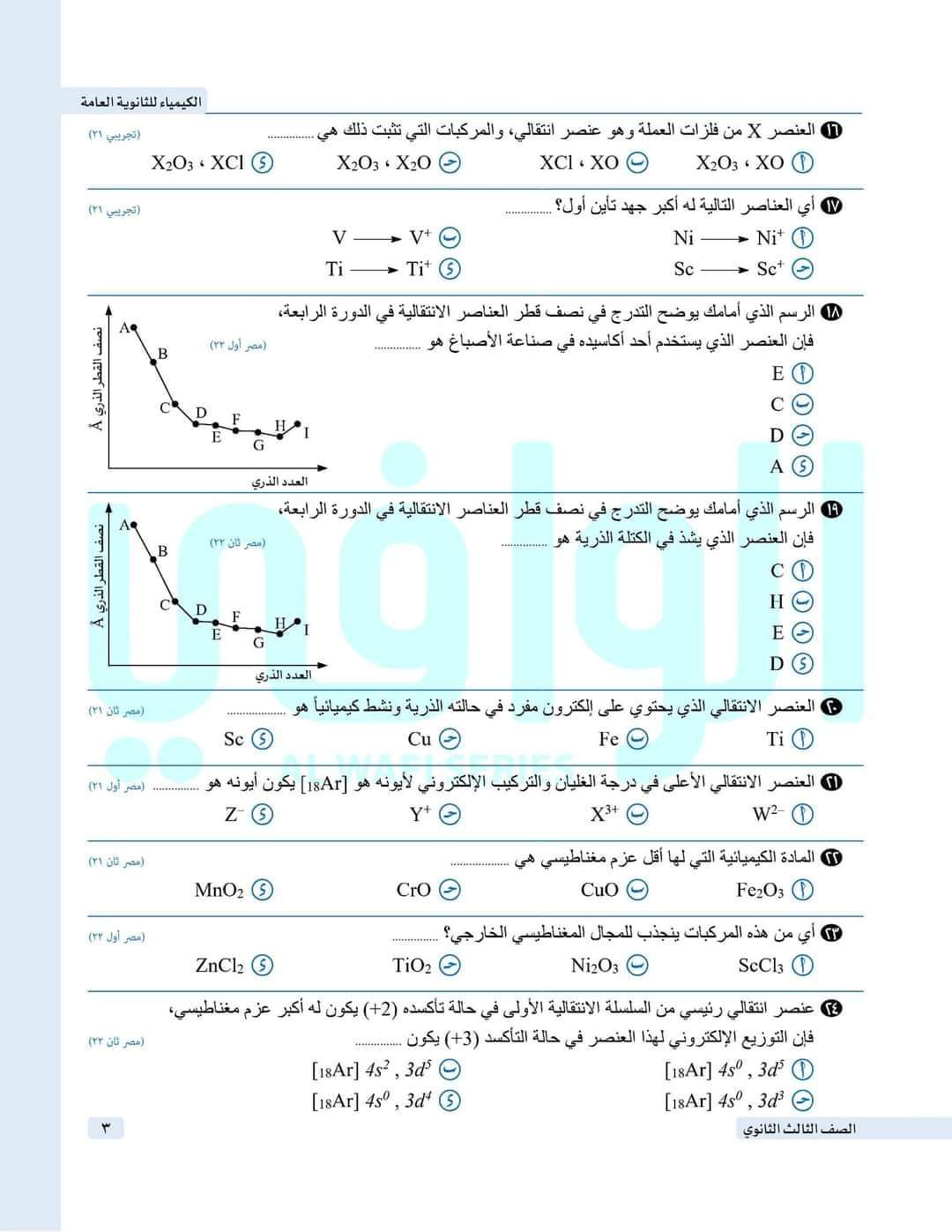 تحميل تحليل للامتحانات السبعة في الكيمياء للصف الثالث الثانوي 2023 التي وضعتها وزارة التربية والتعليم
