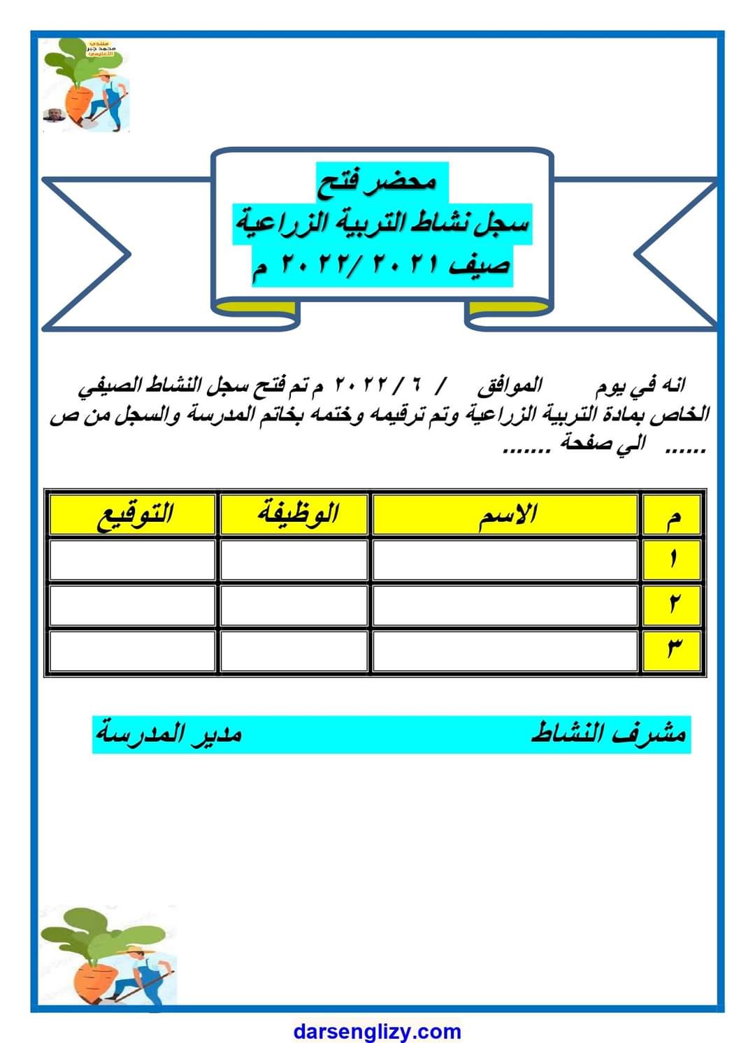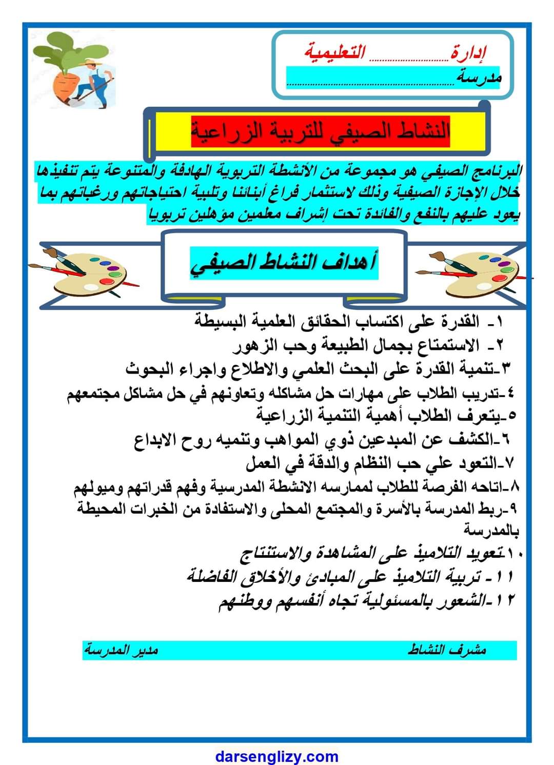 رابط سجل النشاط الصيفي للتربية الزراعية pdf