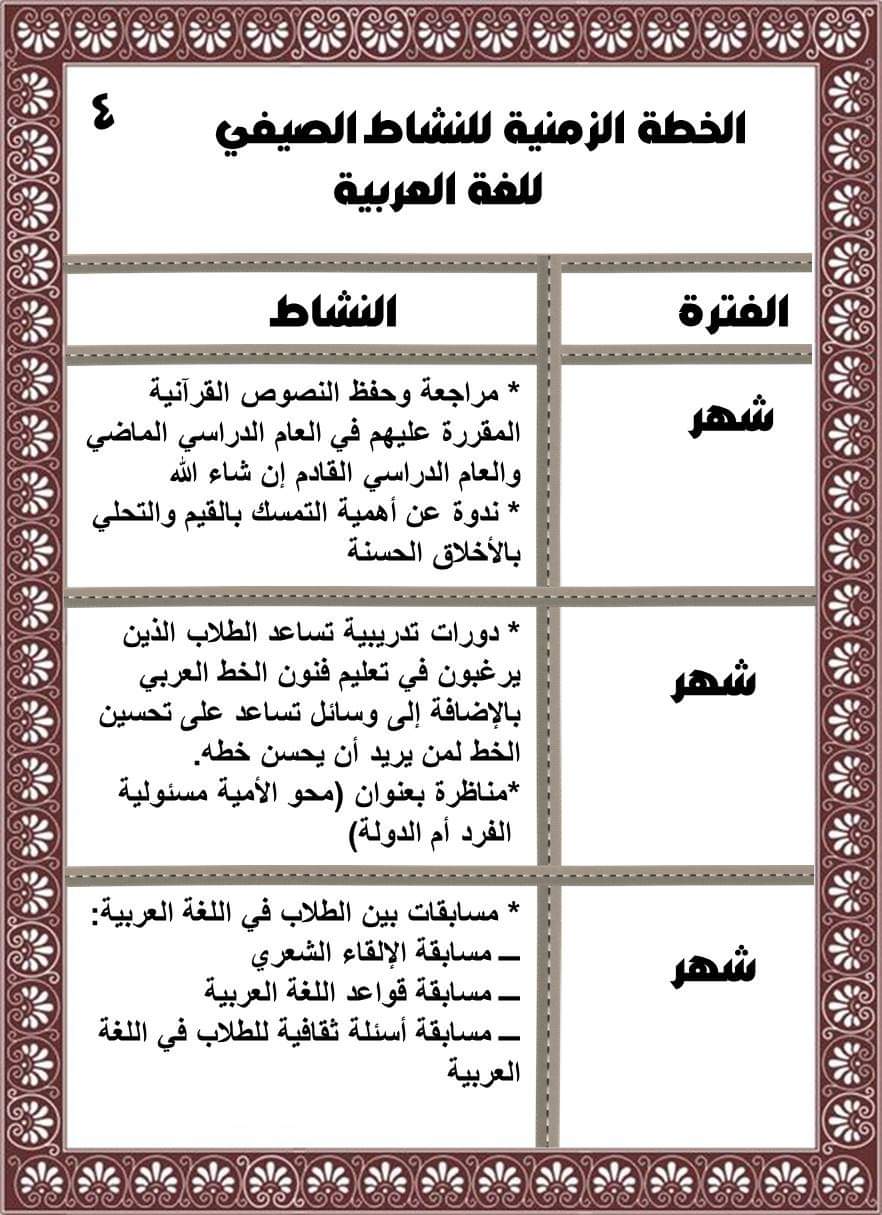 رابط سجل النشاط الصيفي للغة العربية pdf