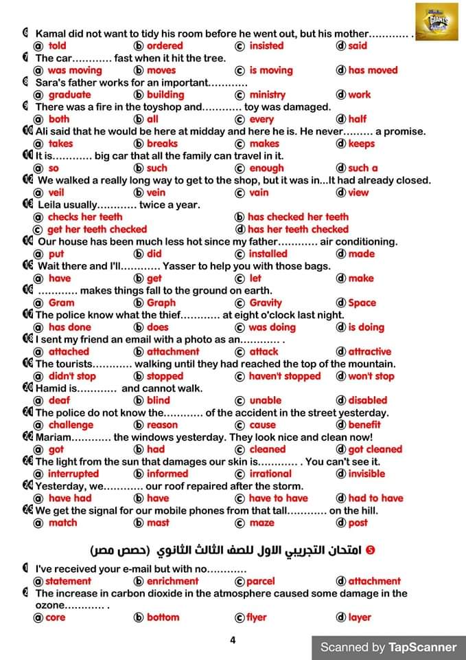 تحميل حل الامتحانات التجريبية في اللغة الانجليزية للصف الثالث الثانوي من العمالقة