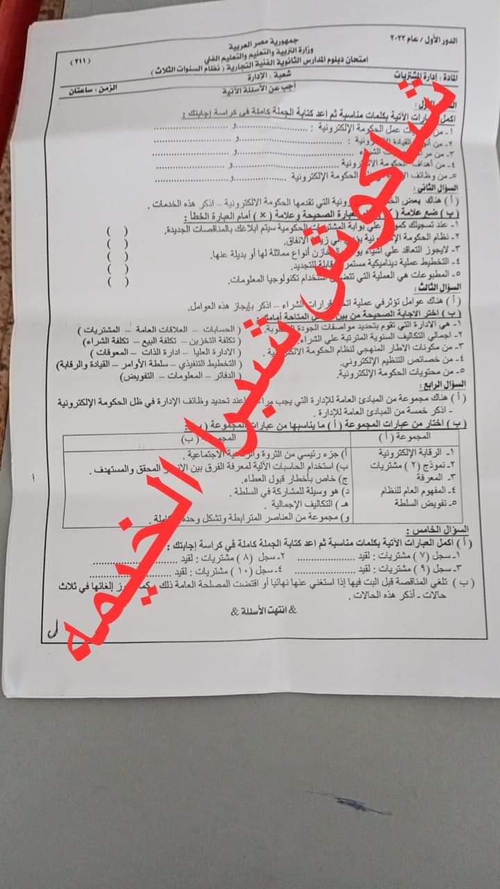 حل امتحان إدارة المشتريات لشعبة التأمينات الدور الاول 2023