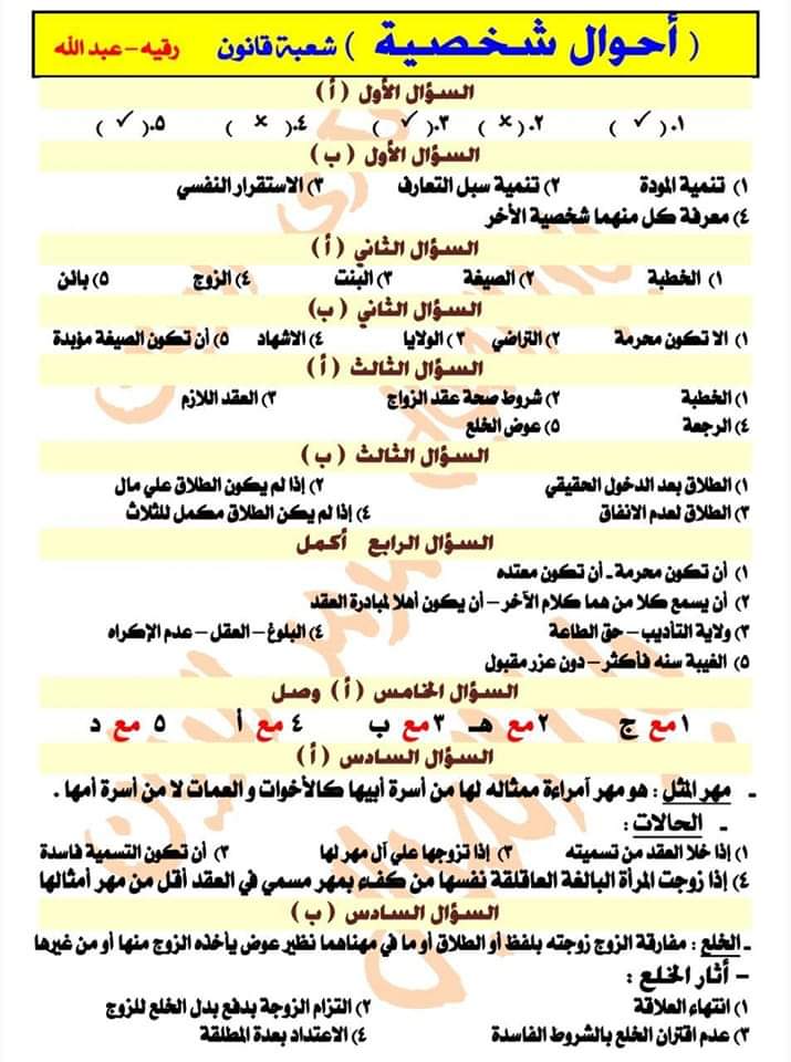 حل امتحان الاحوال الشخصية شعبة قانون الدور الاول 2023