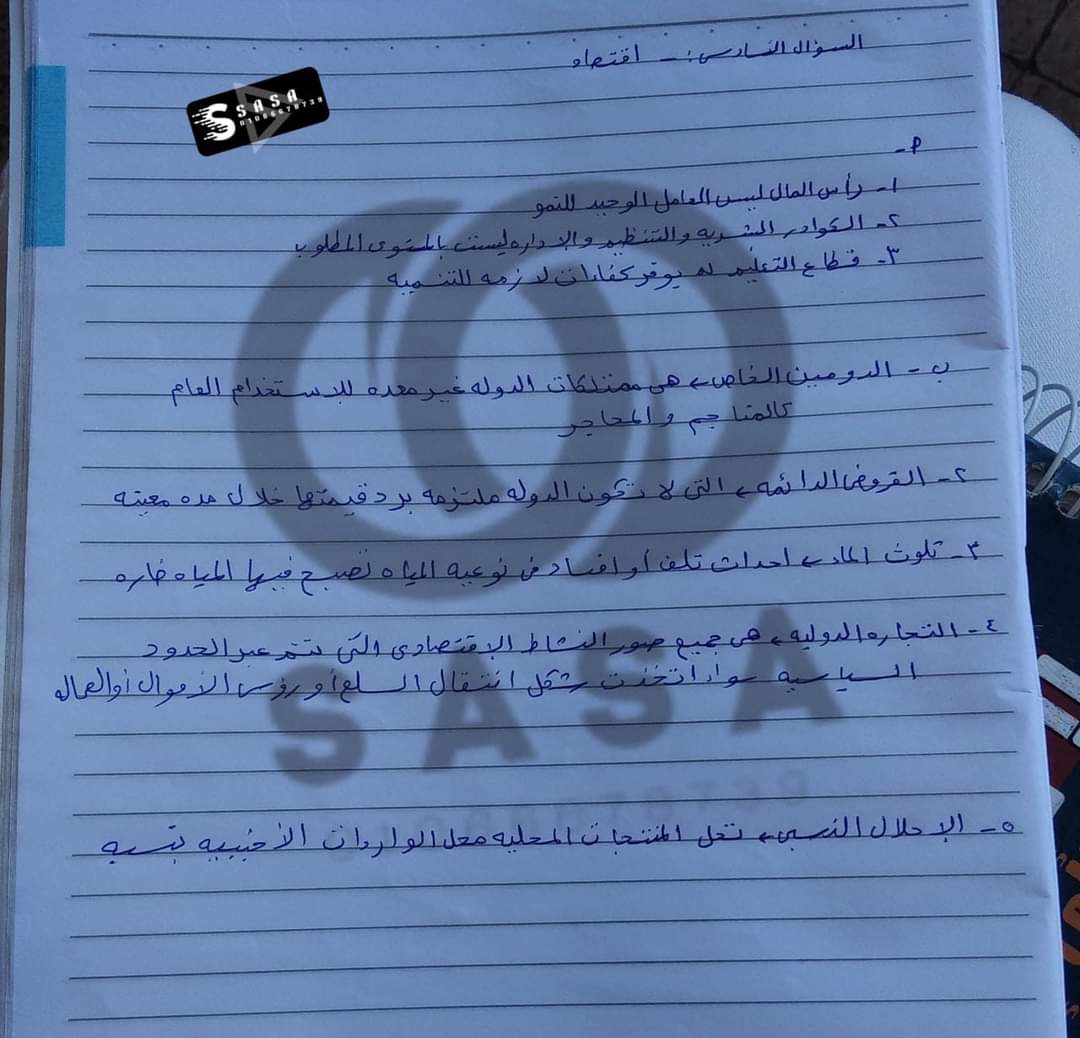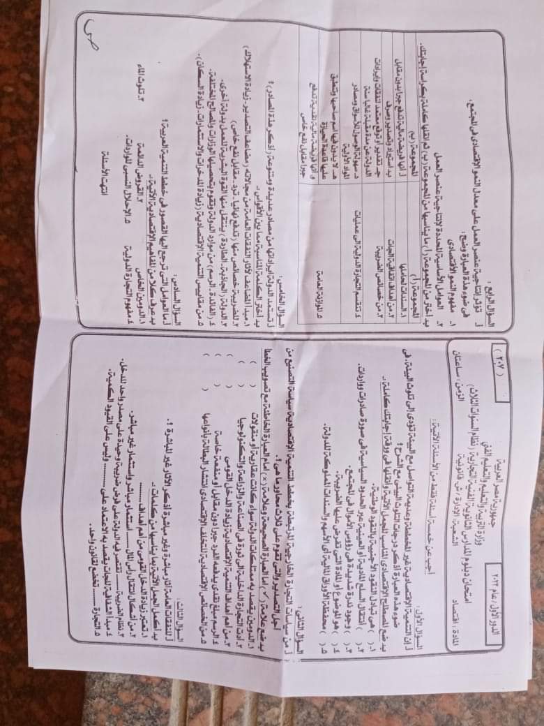 تحميل حل امتحان الاقتصاد شعبة ادارة اعمال وقانون الدور الاول 2023