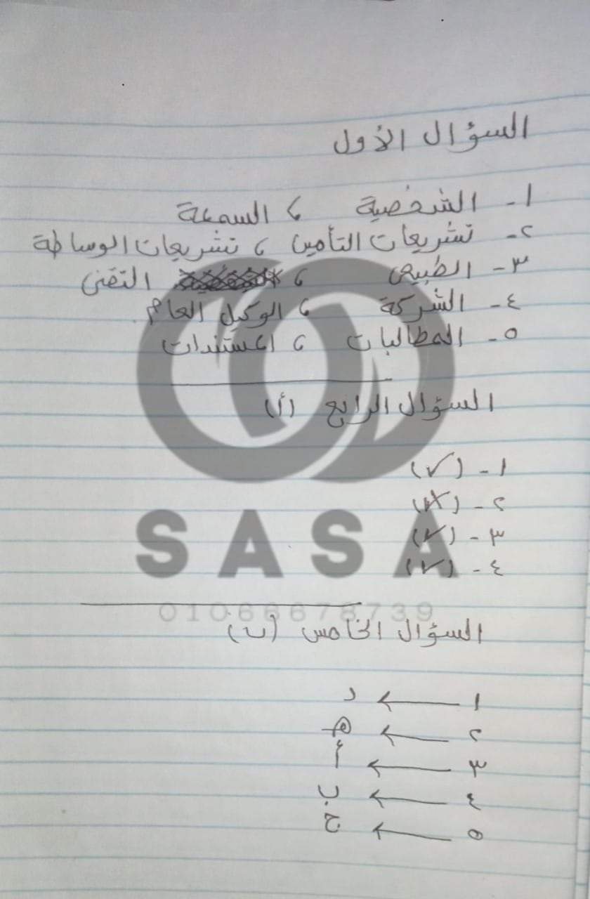 تحميل حل امتحان التأمينات تالتة تجارة الدور الاول 2023