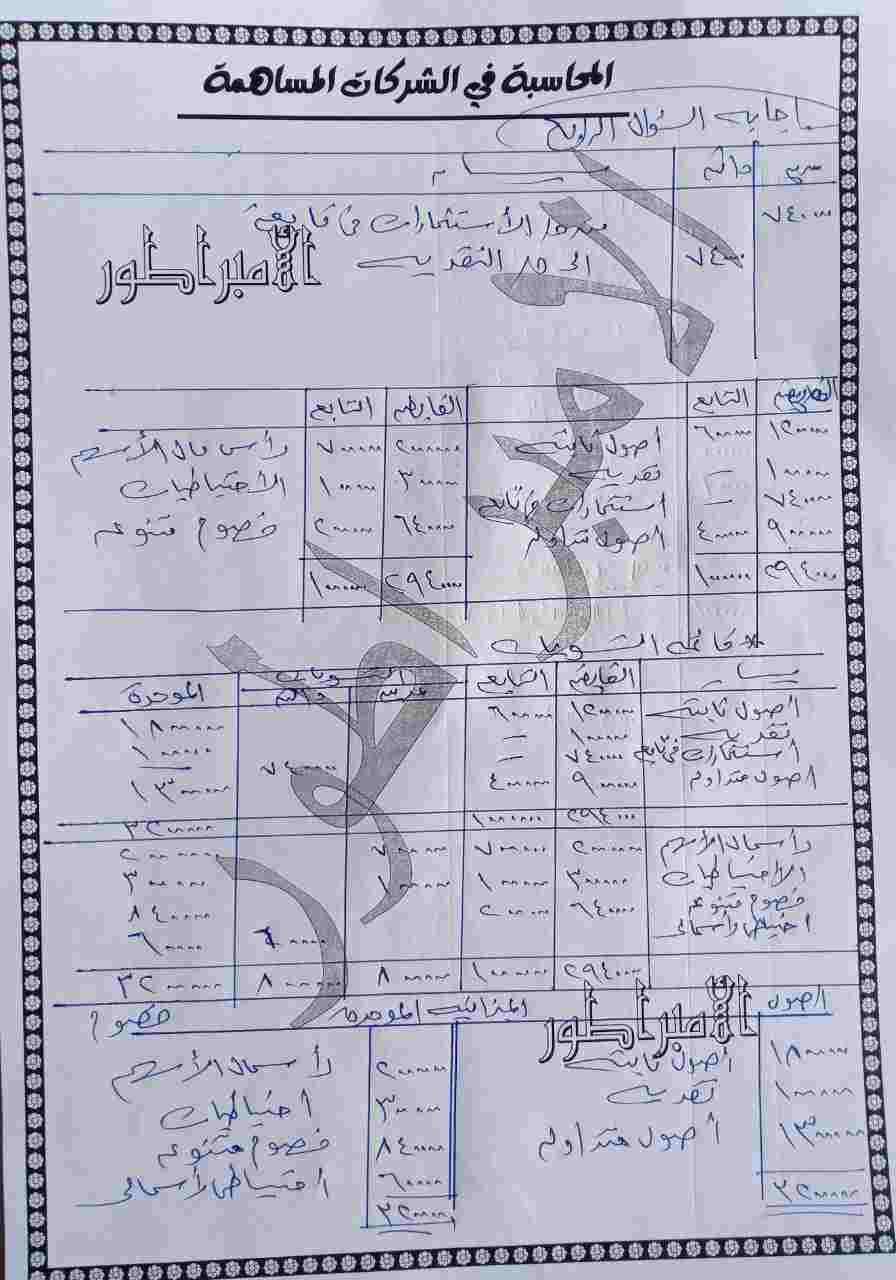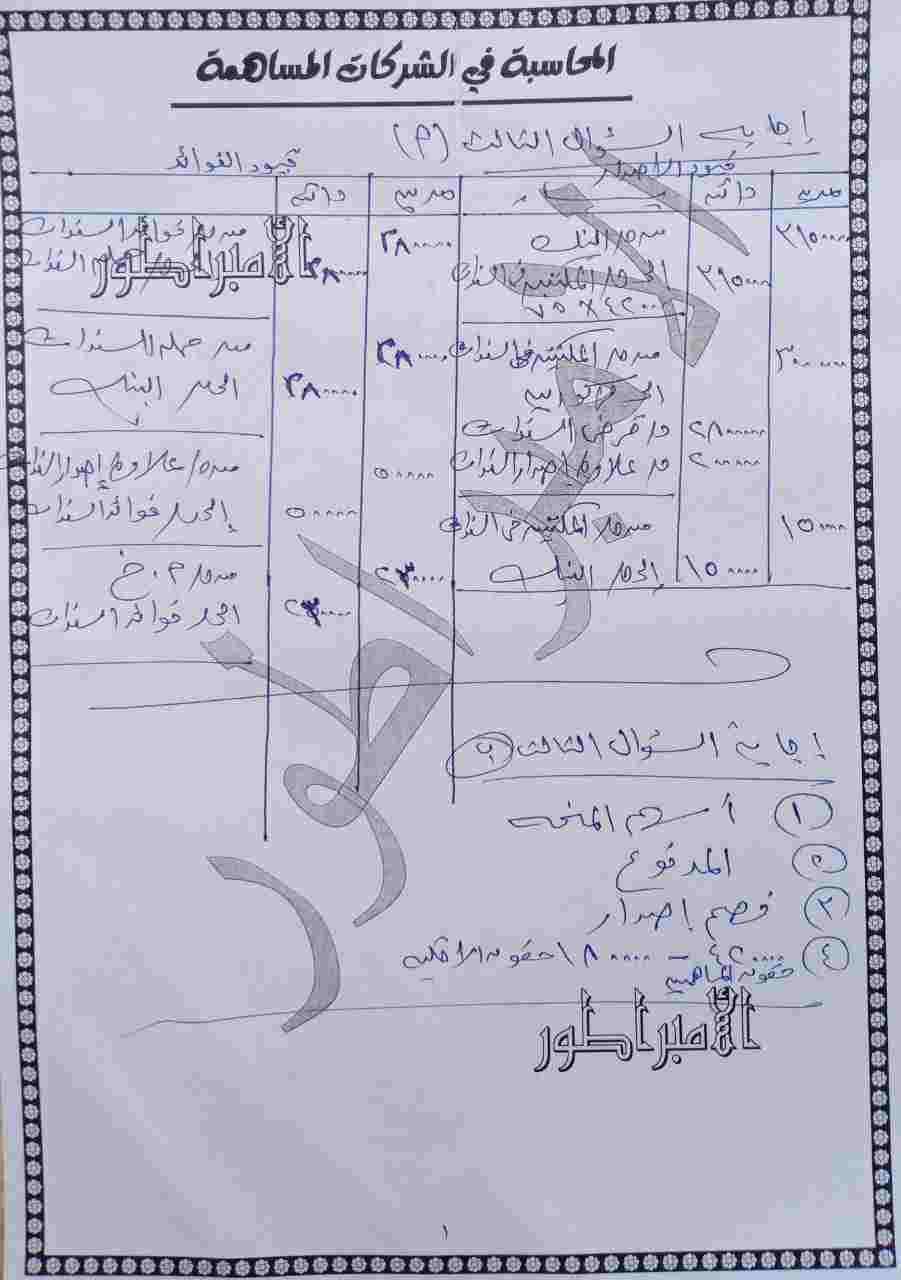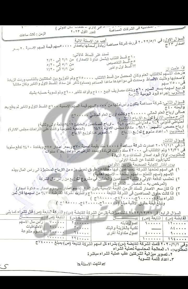 تحميل حل امتحان المحاسبة في الشركات المساهمة شعبة تسويق الدور الاول 2023