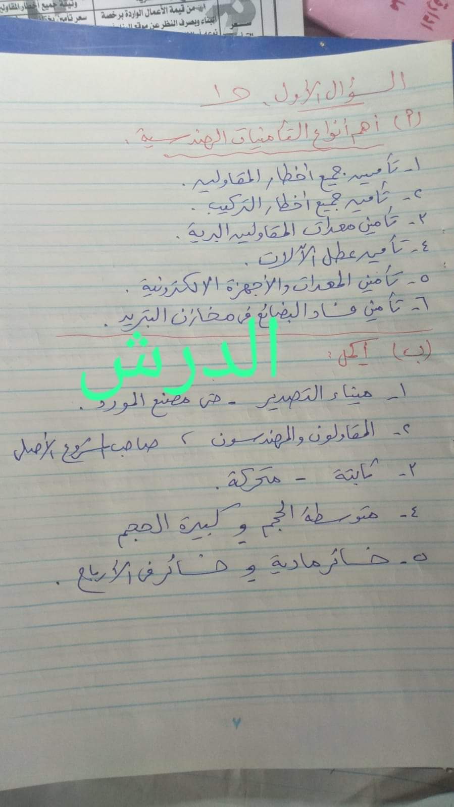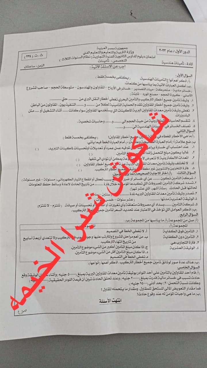 تحميل حل امتحان تأمينات هندسية لشعبة التأمينات الدور الاول 2023