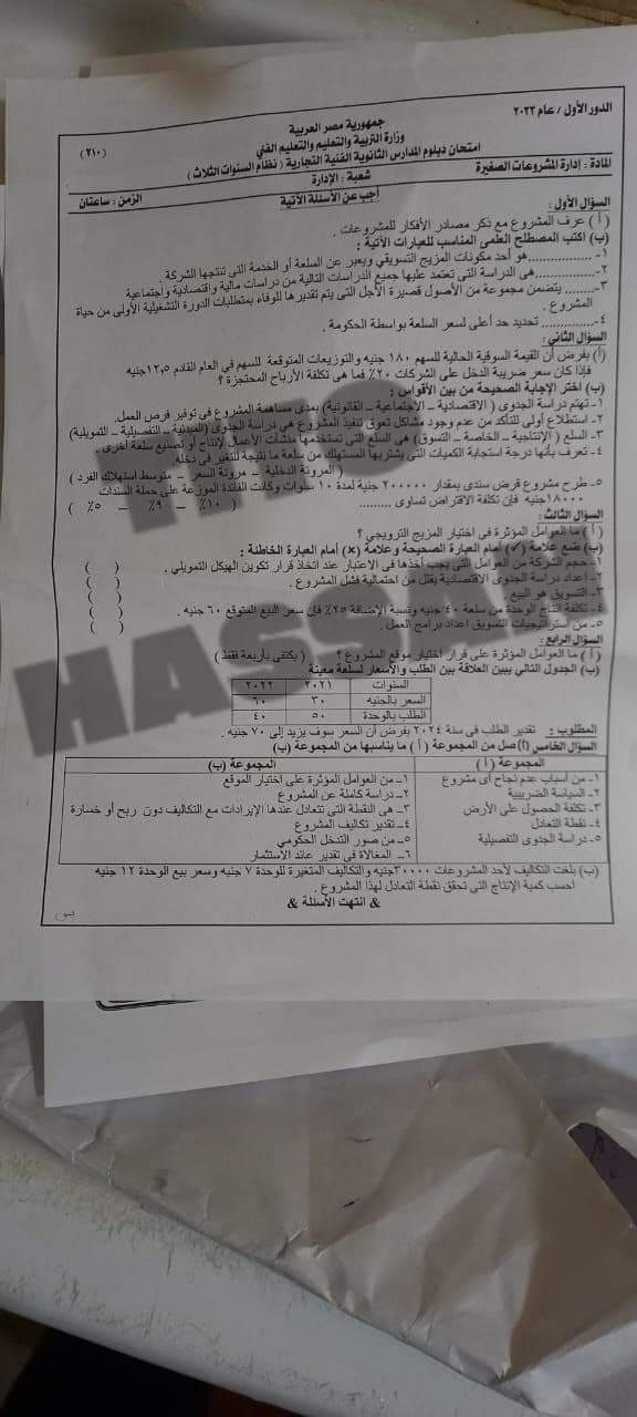 تحميل حل امتحان مشروعات صغيرة شعبة ادارة اعمال الدور الاول 2023