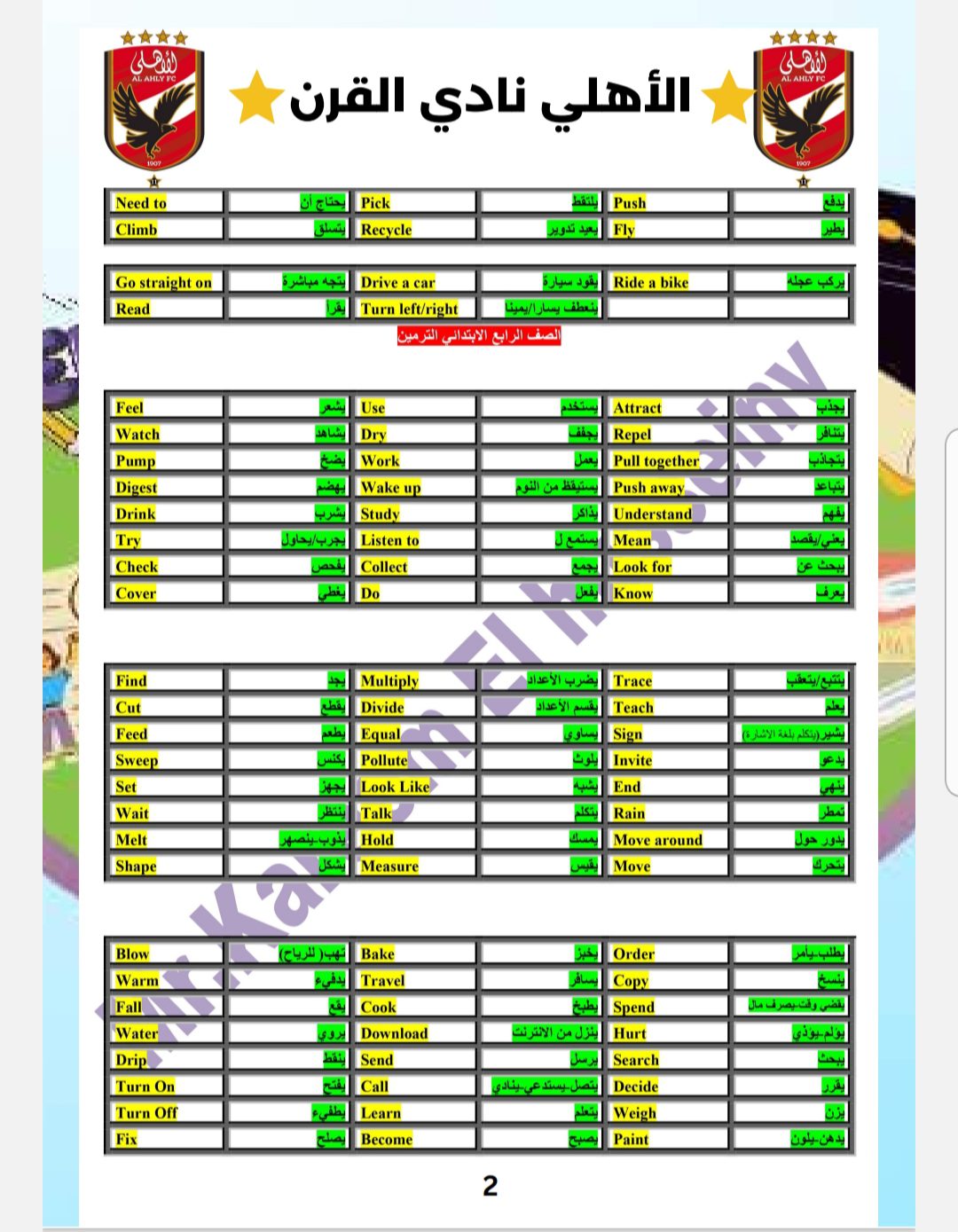 تجميع كل أفعال منهج كونكت من سنه ١ لسنه ٥ بدون تكرار