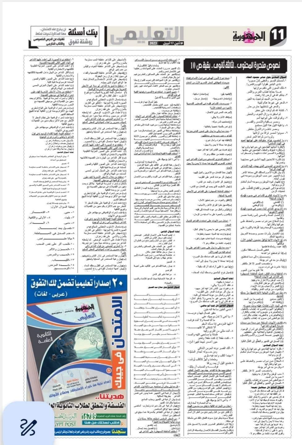 تحميل مراجعة النصوص المتحررة بالاجابات للثانوية العامة من جريدة الجمهورية لن يخرج عنها الامتحان