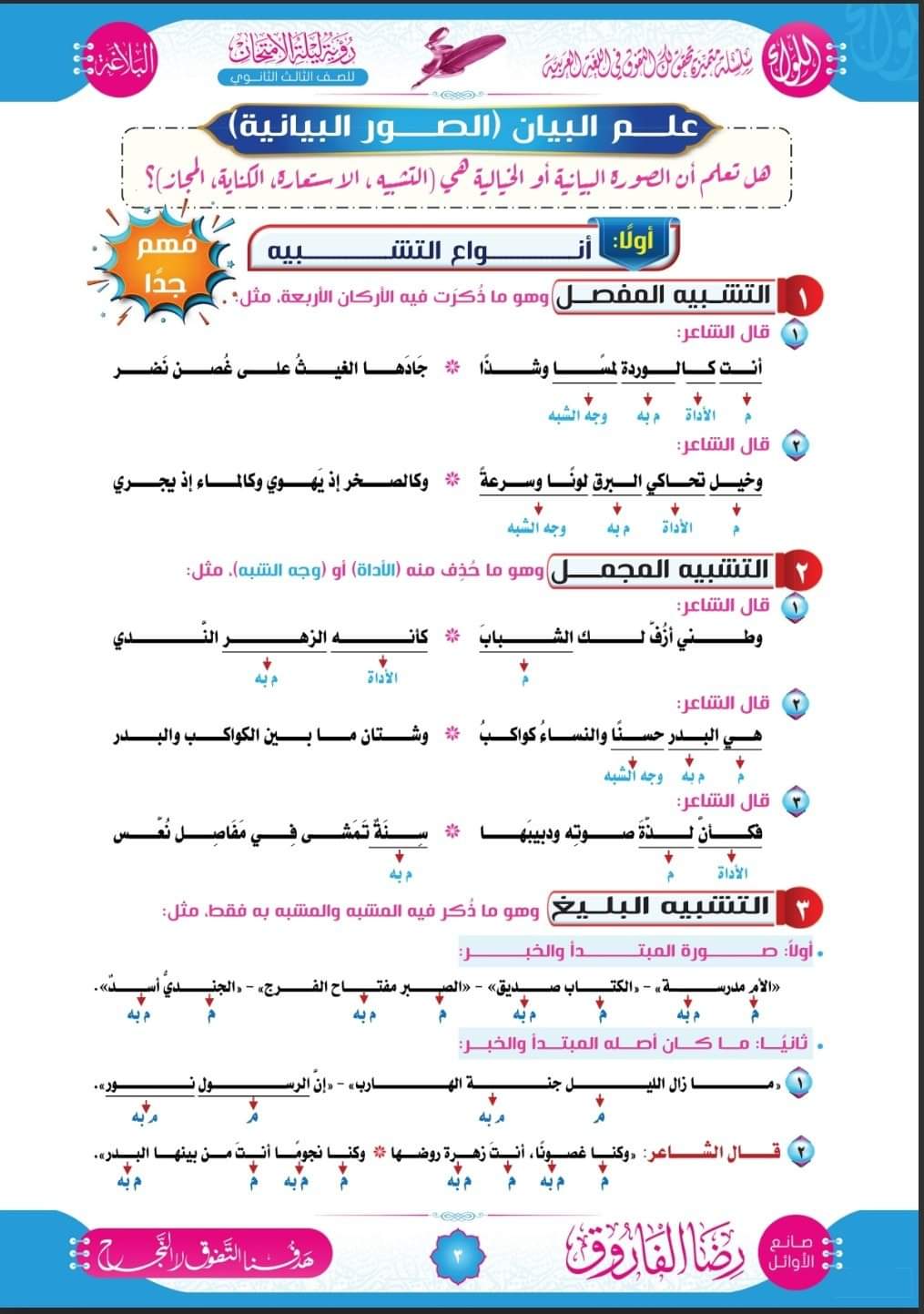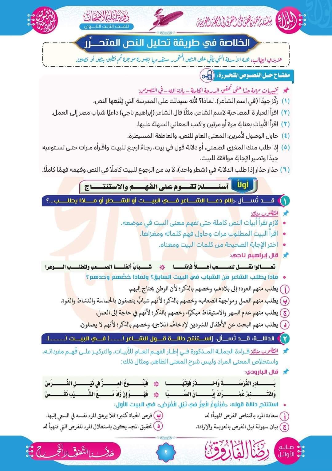 تحميل مراجعة وتوقعات رضا الفاروق في البلاغة والنصوص للثانوية العامة 2023