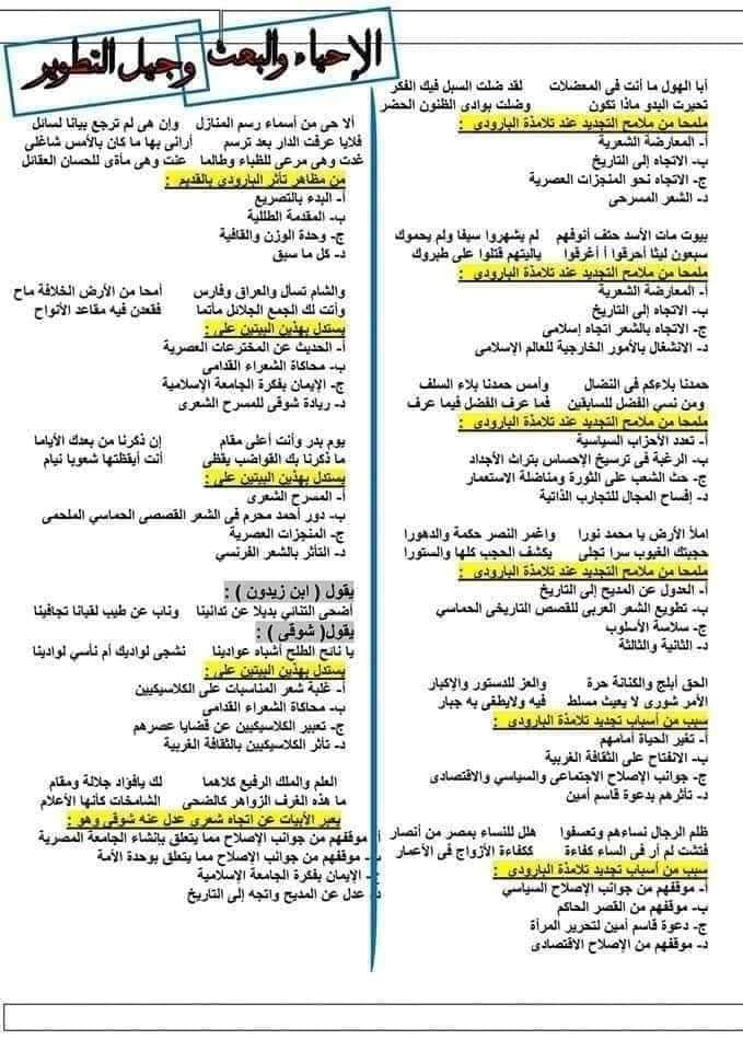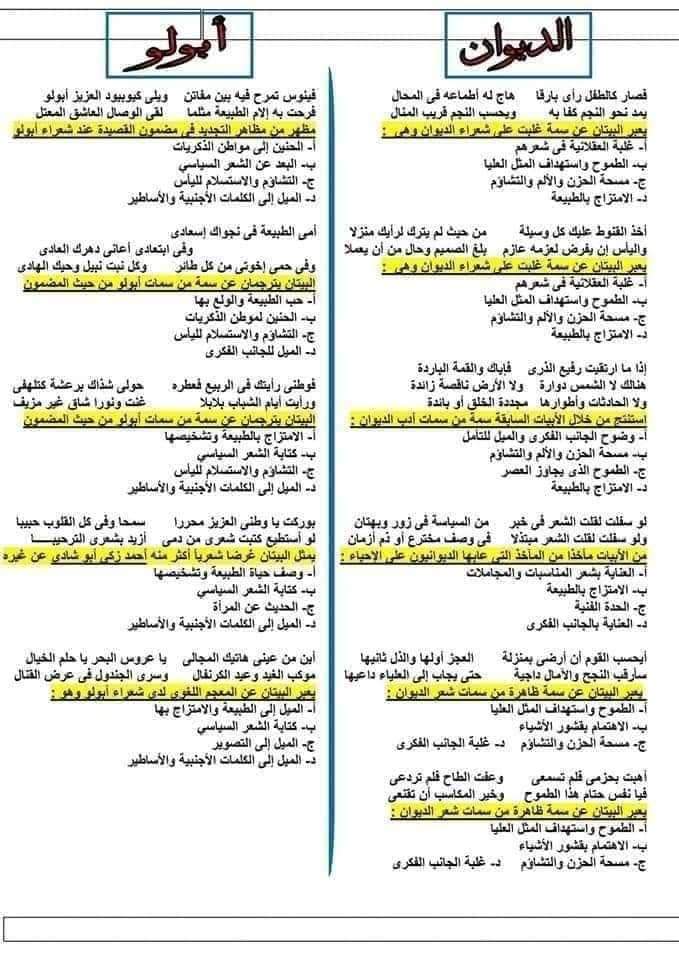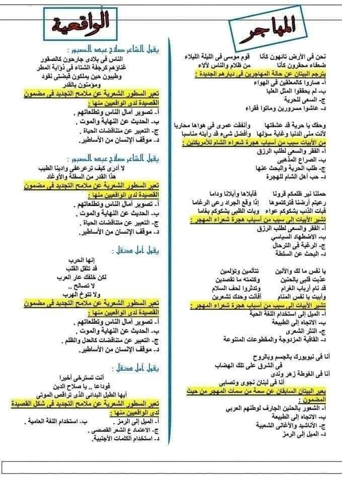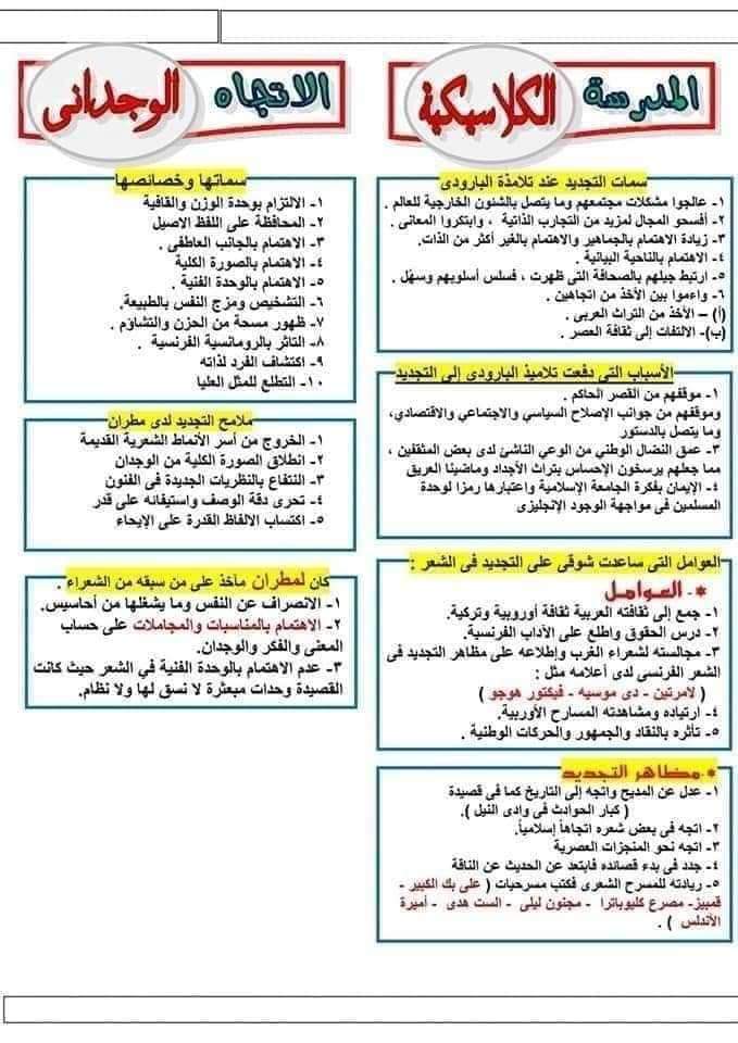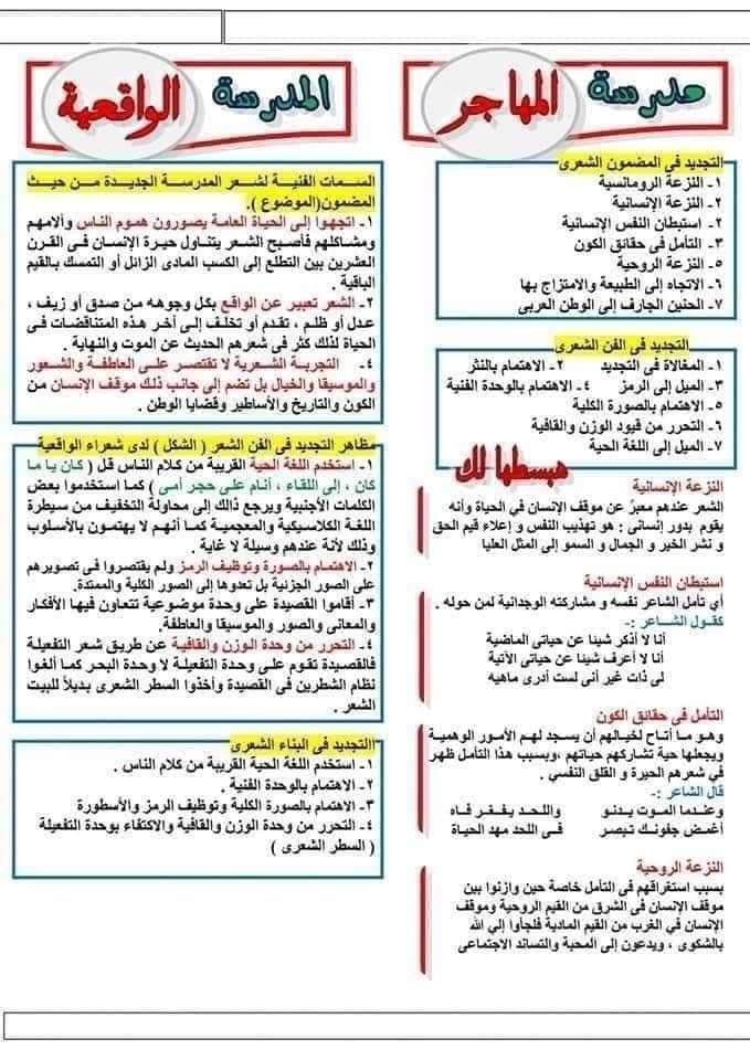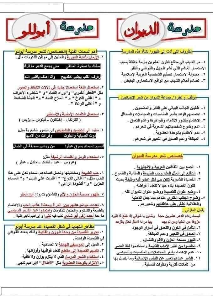 تحميل ملخص رائع للمدارس الأدبية للصف الثالث الثانوي