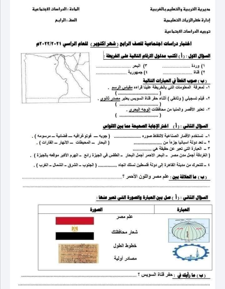 يقدم لكم موقع كتاتيب للتعليم عن بعدأمتحانات دراسات للصف الرابع الأبتدائي ترم أول.
