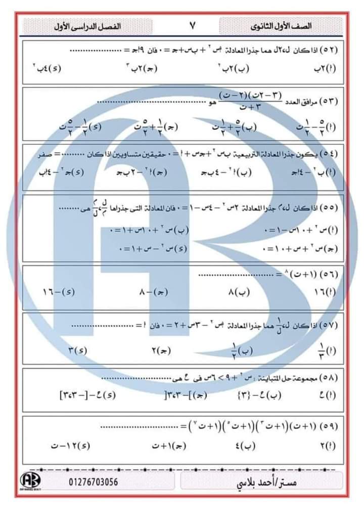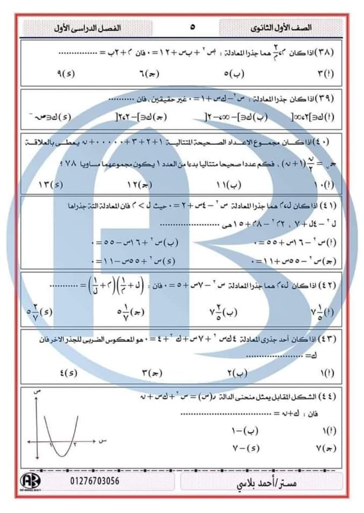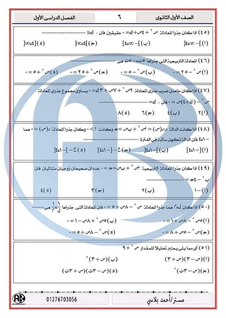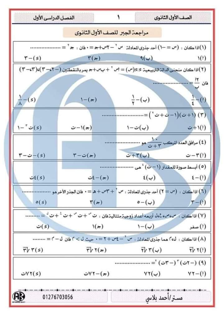 الوسوم: اسألة جبر, الاول الثانوي, الصف الاول, اولى ثانوي, جبر, مراجعة جبر
