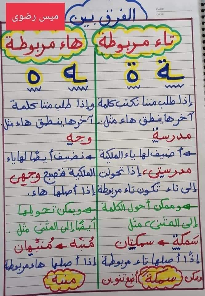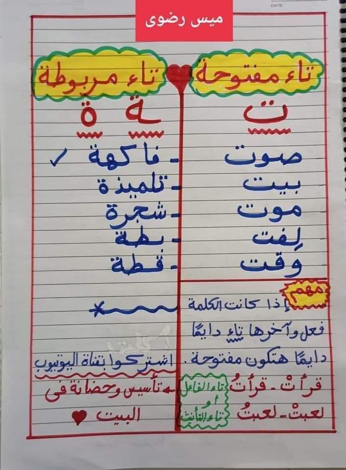 الوسوم: التاء المربوطة, التاء المفتوحه, الفرق بين