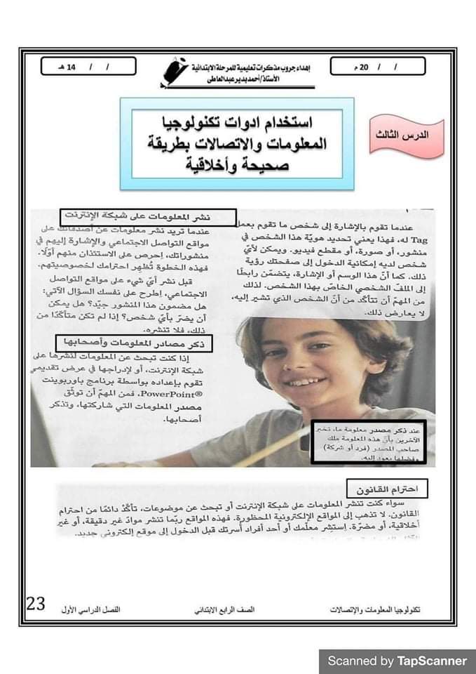 الرئيسية › المنتديات › منصة الطالب › المحور الثانى احتياطات السلامة الرقمية تكنولوجيا المعلومات والاتصالات للصف الرابع الإبتدائى الترم الأول