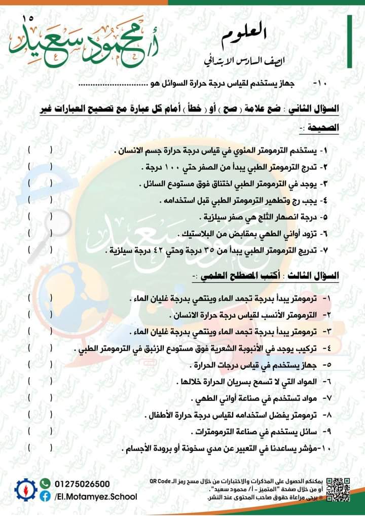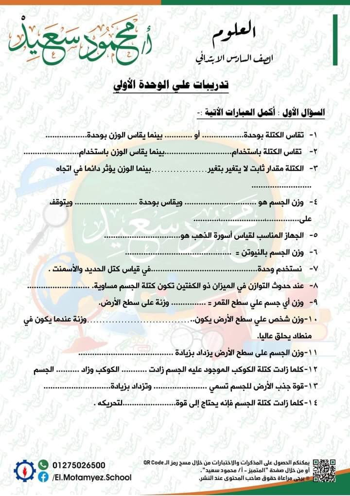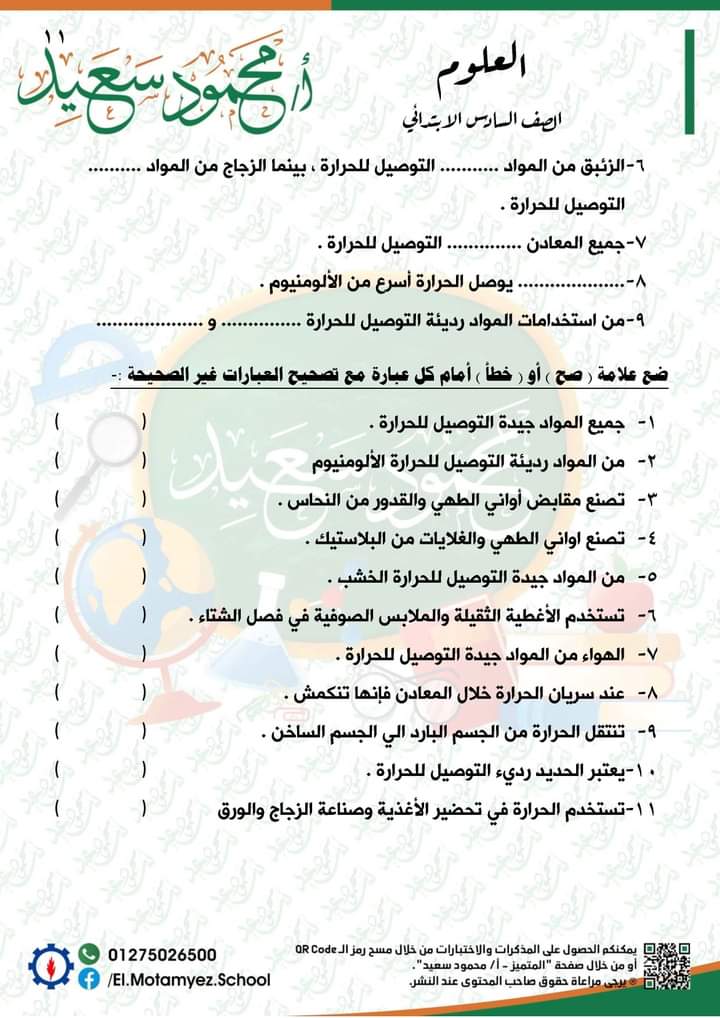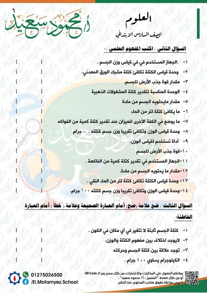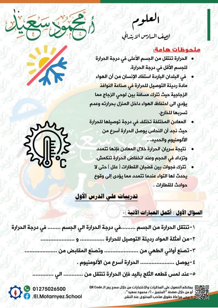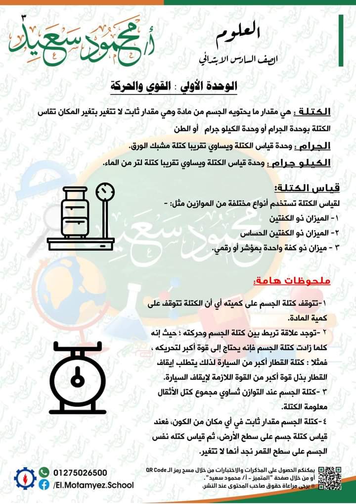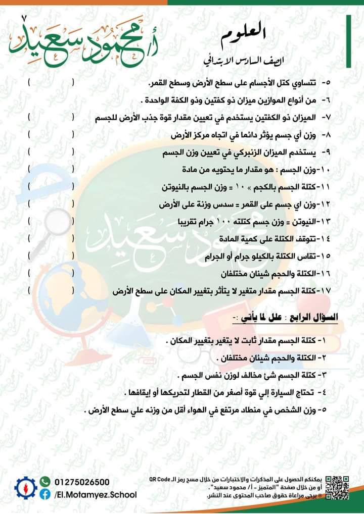 الوسوم: الابتدائي, الشهاده الابتدائيه, الصف السادس, ترم أول, شرح علوم, مراجعة علوم