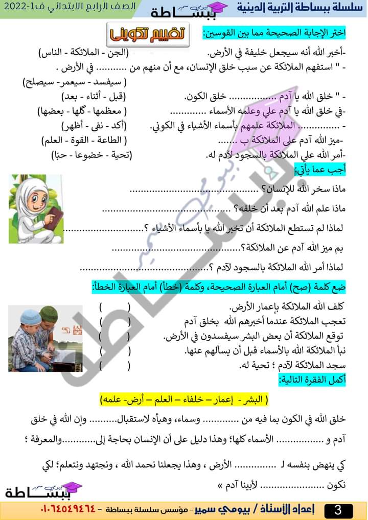 الوسوم: الصف الرابع, تربية إسلامية, ترم اول, رابعة ابتدائى