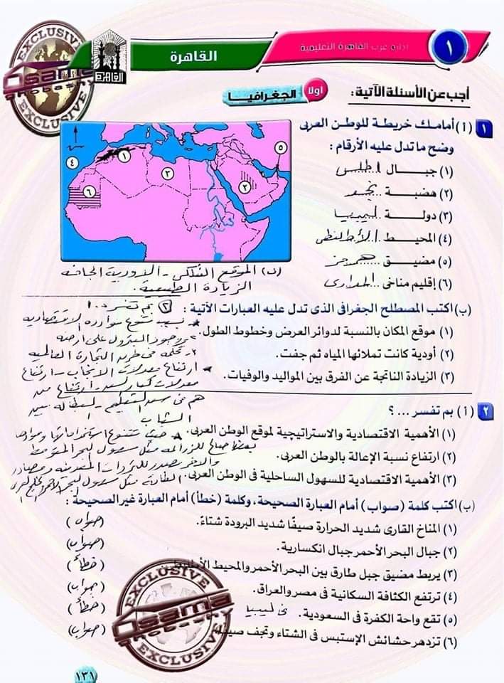 الرئيسية › المنتديات › منصة الطالب › حل اسألة كتاب الامتحان في مادة الدراسات الإجتماعية للصف الثاني الاعدادي الترم الاول