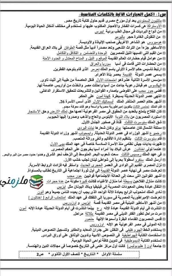 الرئيسية › المنتديات › منصة الطالب › سؤال وجواب فى مادة التاريخ للصف الأول الثانوى الترم الأول