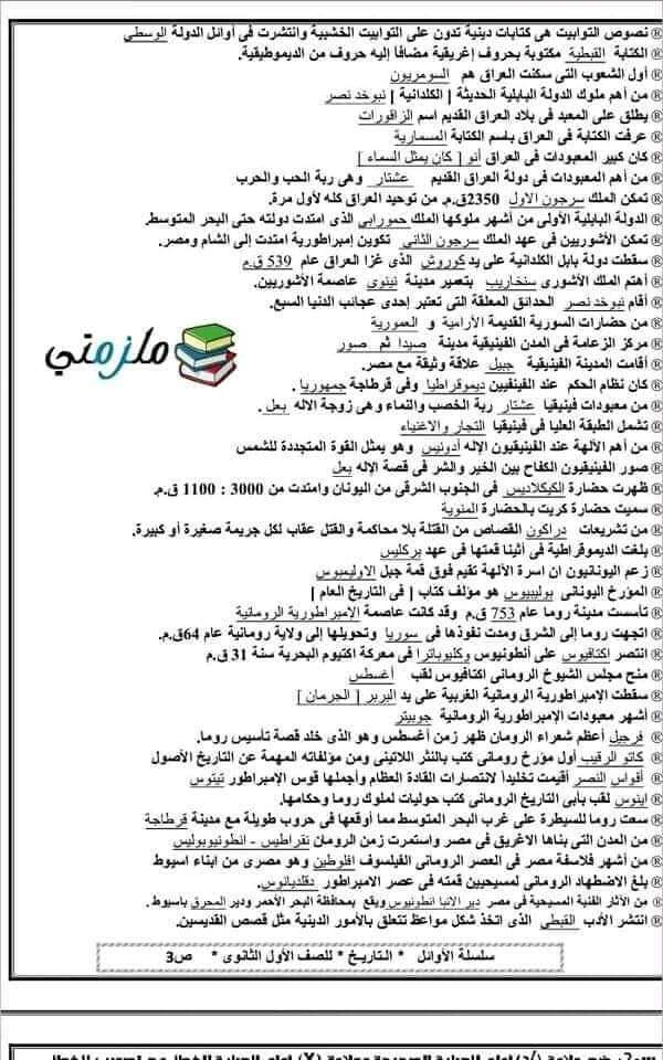الوسوم: الاول الثانوي, الصف الاول, اولى ثانوي, سؤال وجواب, مادة التاريخ, مراجعة, مراجعة تاريخ