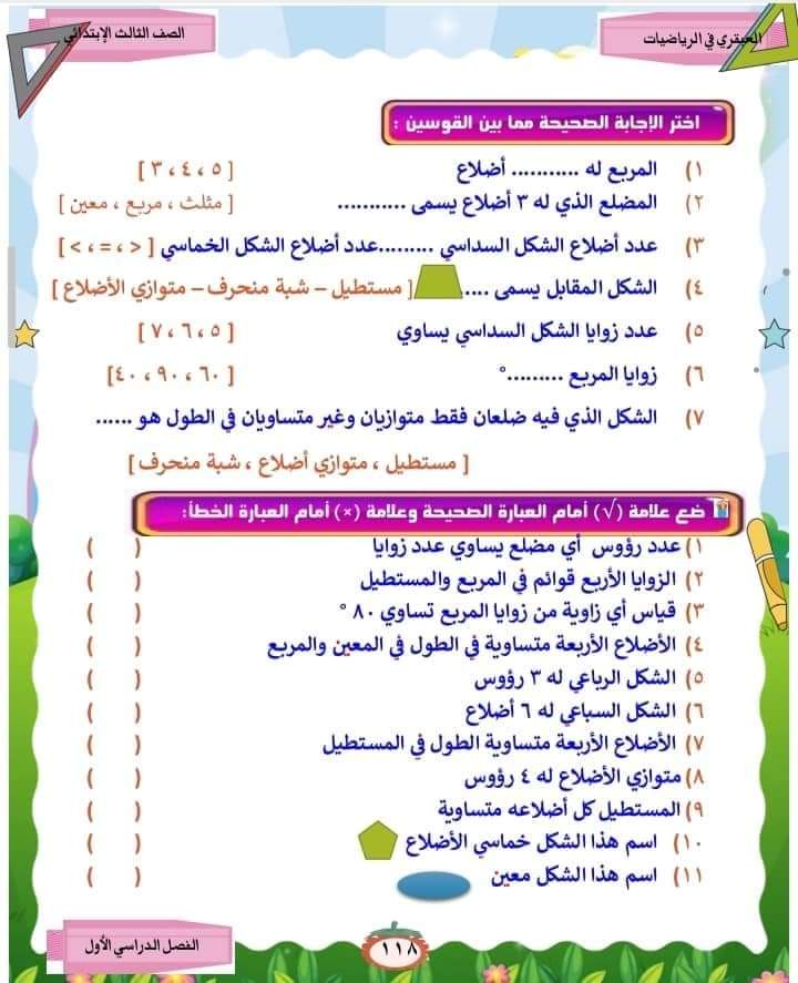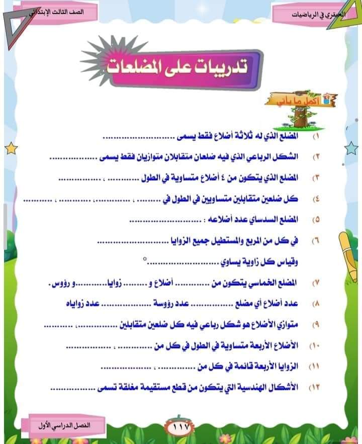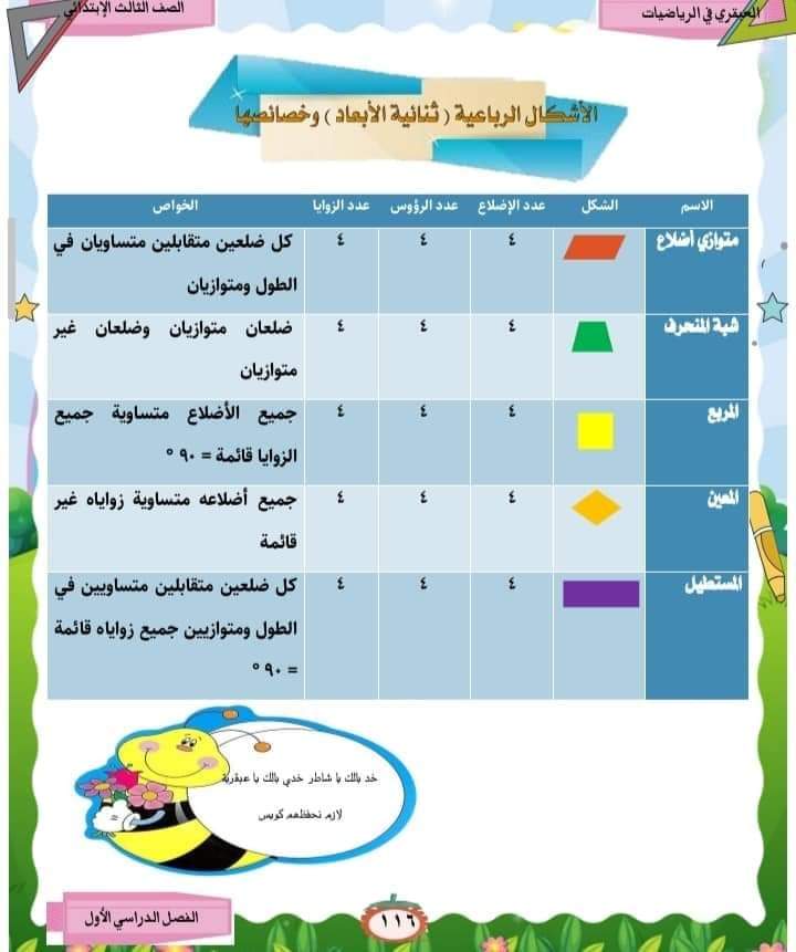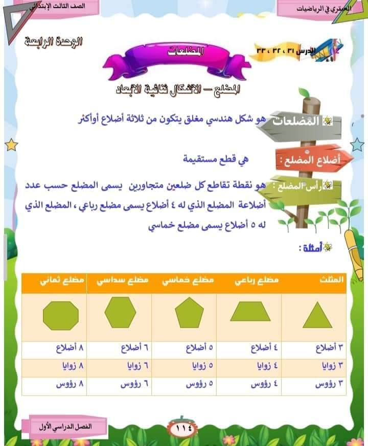 الرئيسية المنتديات منصة الطالب شرح المضلعات والأشكال ثنائية الأبعاد وتدريبات متنوعة رياضيات للصف الثالث الابتدائي ترم أول
