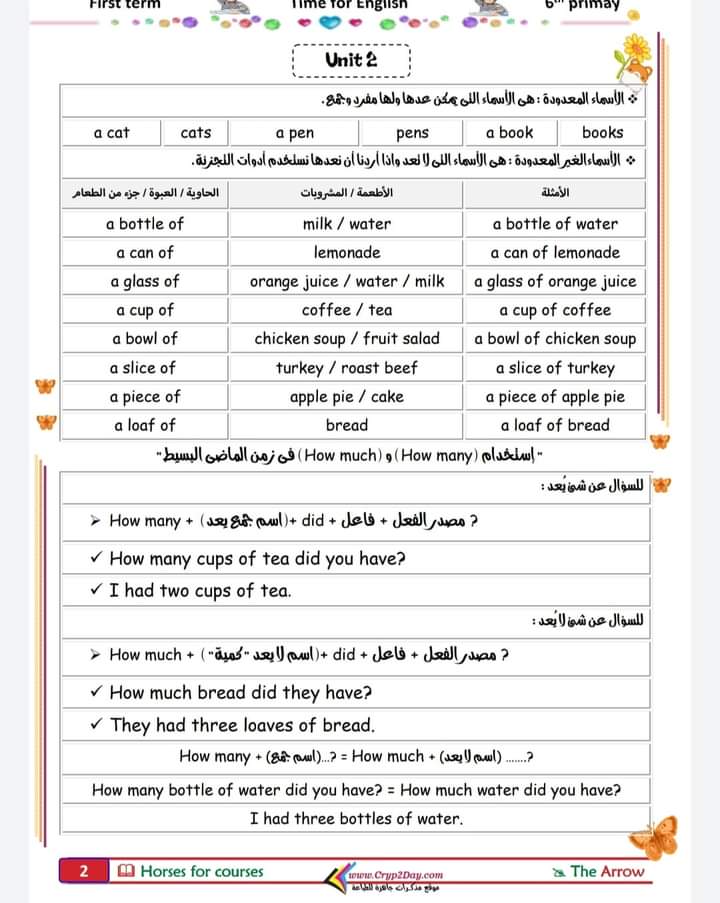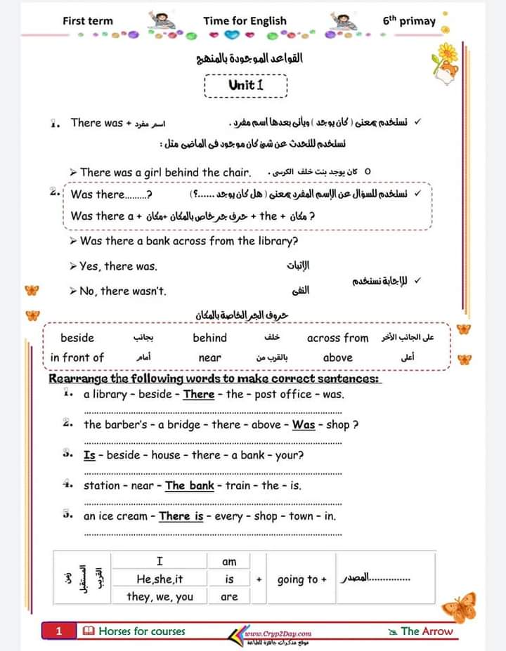 مذكرة قواعد اللغه الانجليزيه للصف السادس الابتدائي pdf