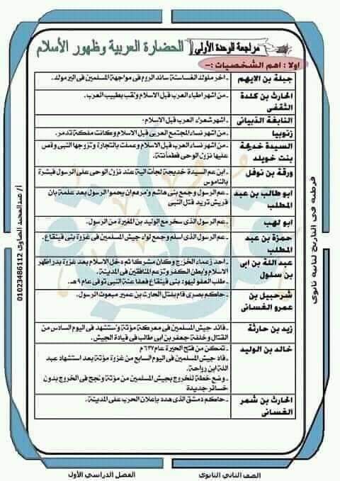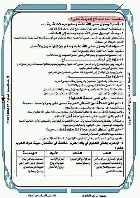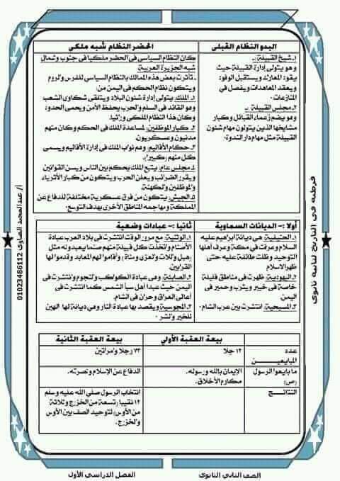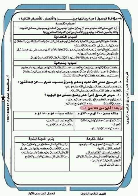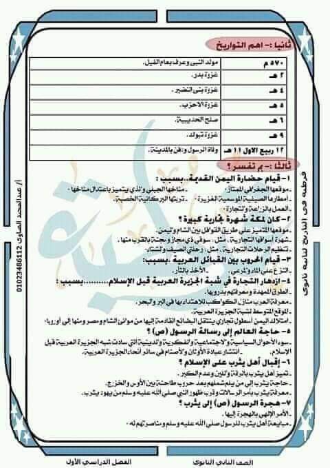 مراجعة تاريخ للصف الثاني الثانوي ترم أول