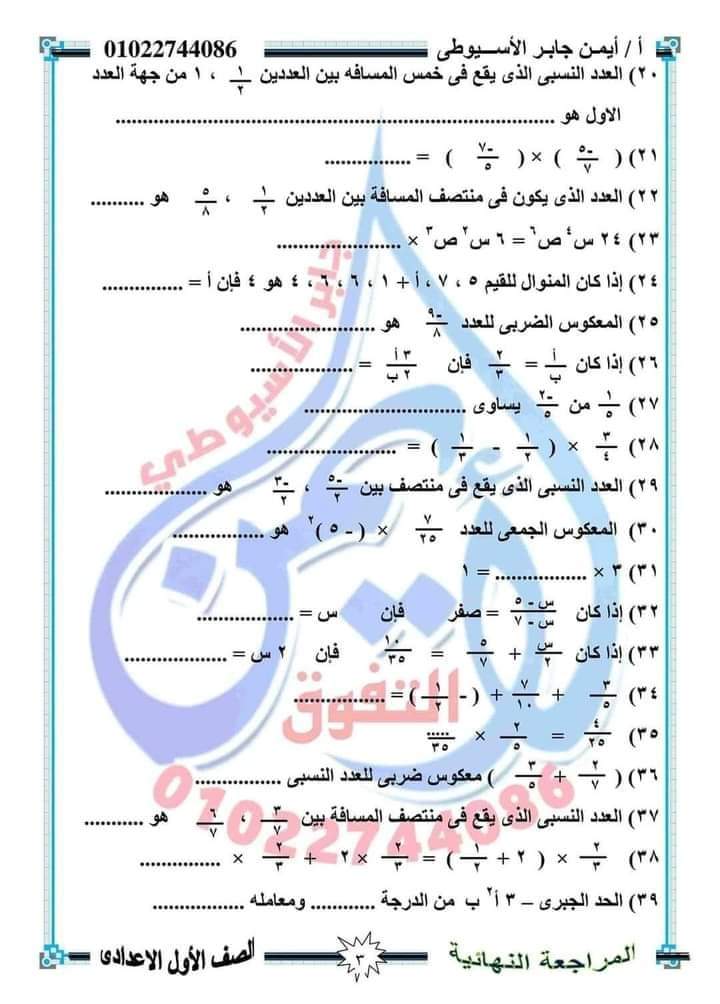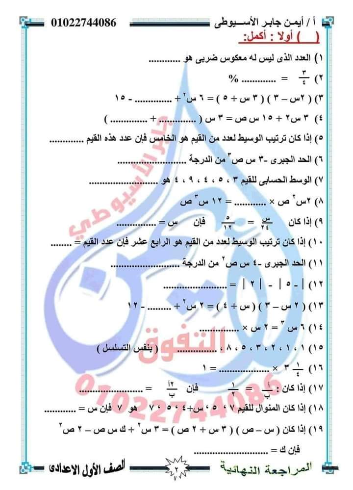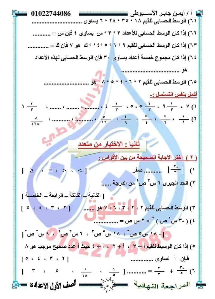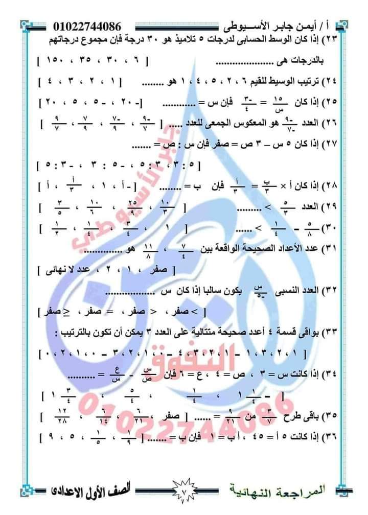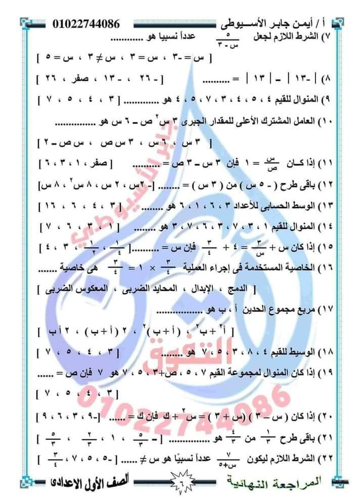 الوسوم: اولى اعدادي, رياضيات, مراجعة رياضة