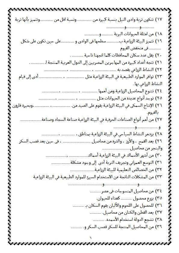 مراجعة فى الدراسات الإجتماعية للصف السادس الإبتدائى الترم الأول
