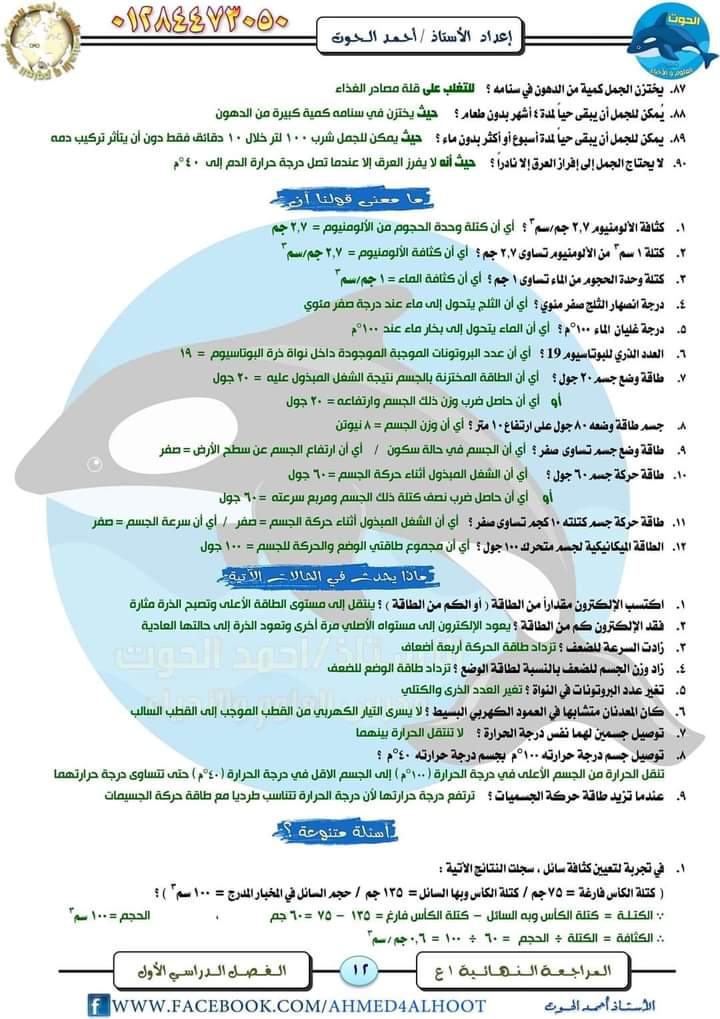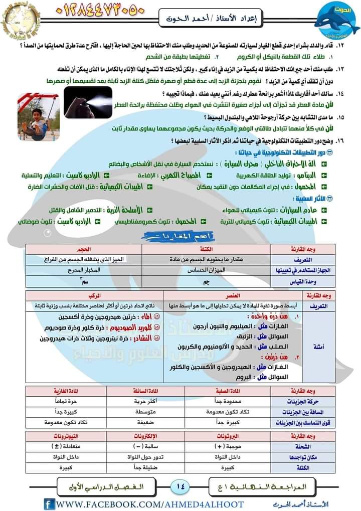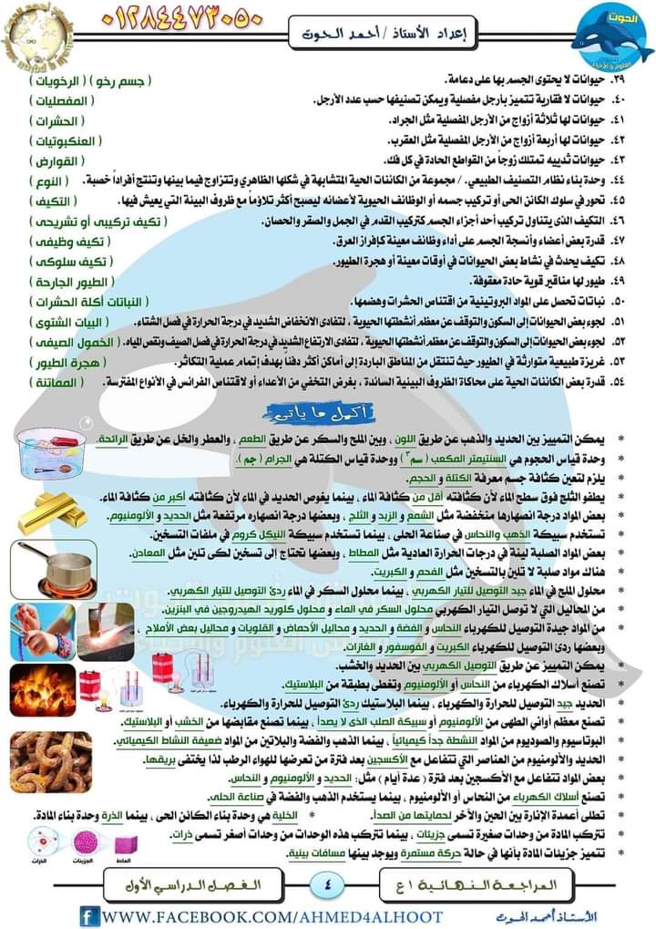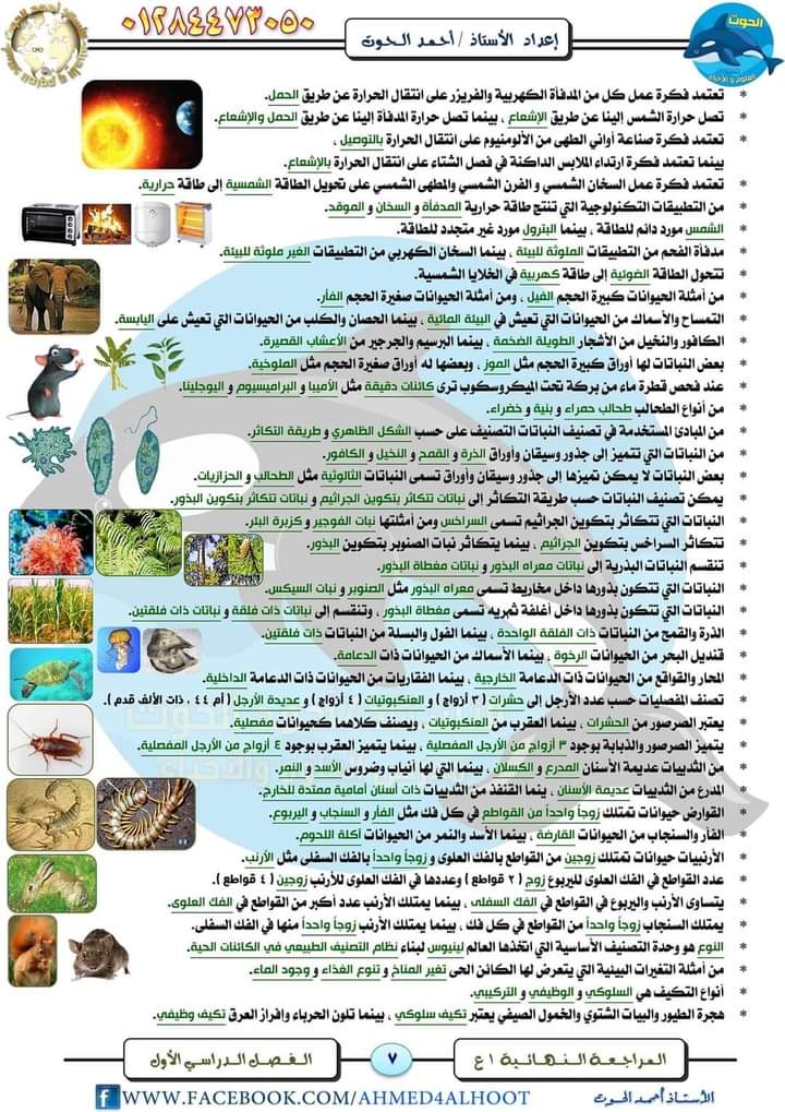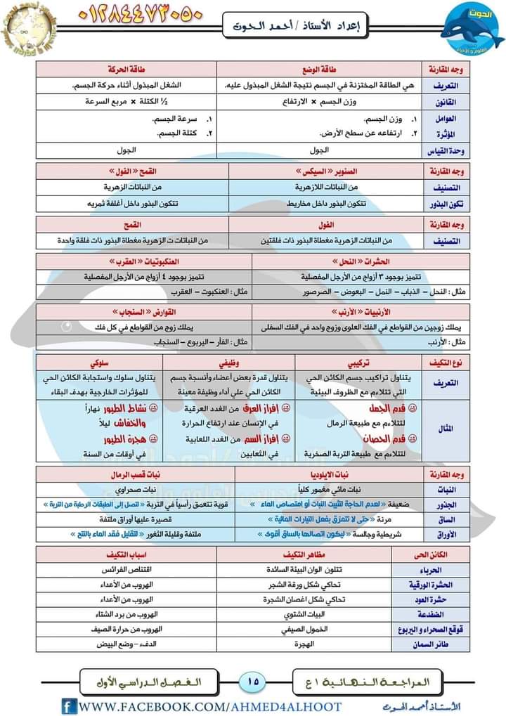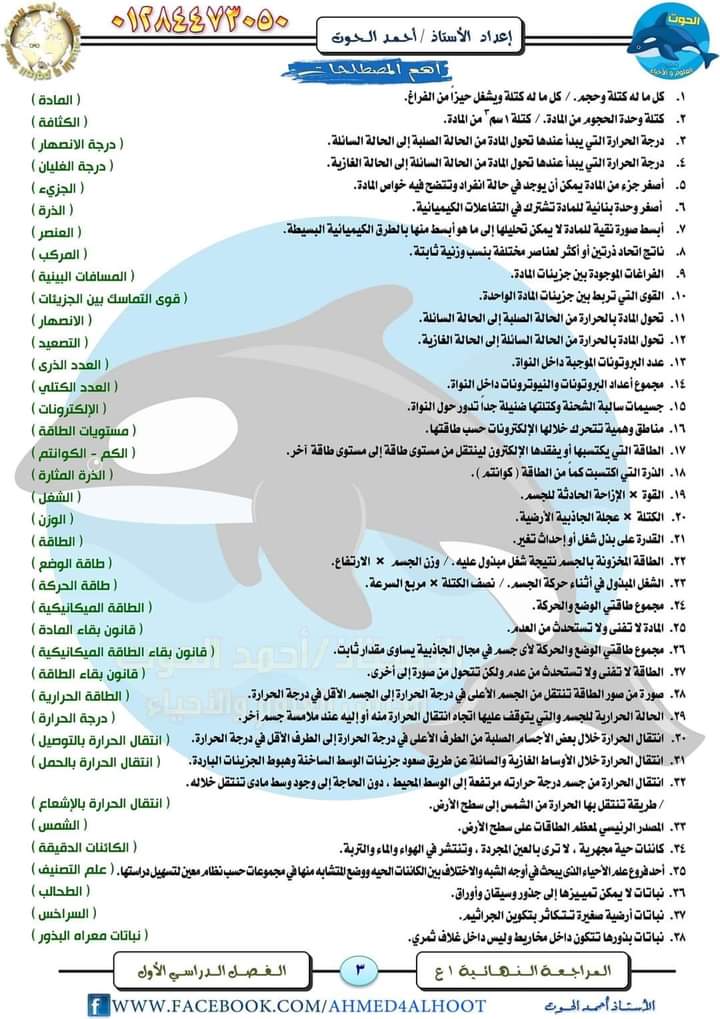 مراجعة فى مادة العلوم للصف الأول الإعدادي الترم الأول
