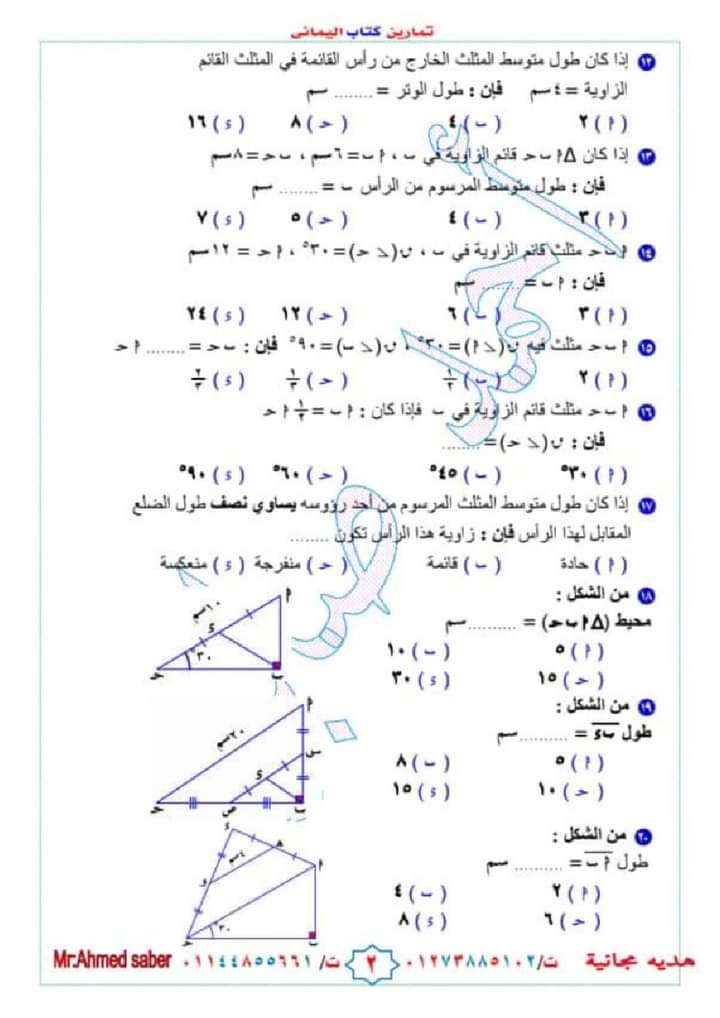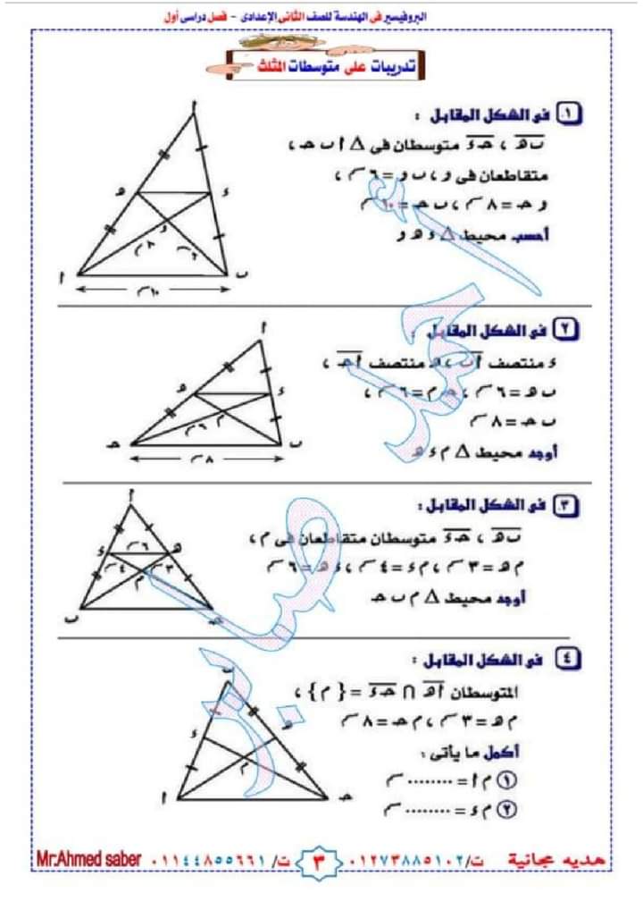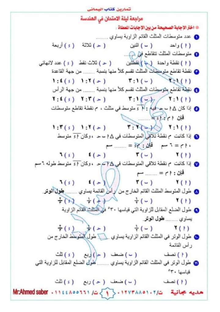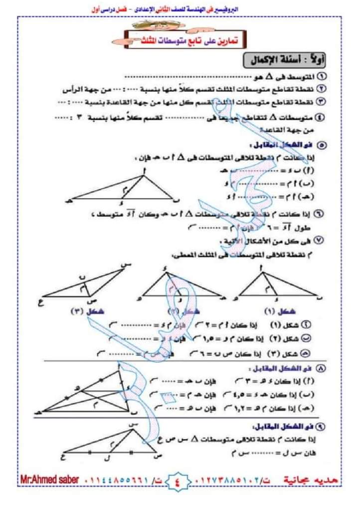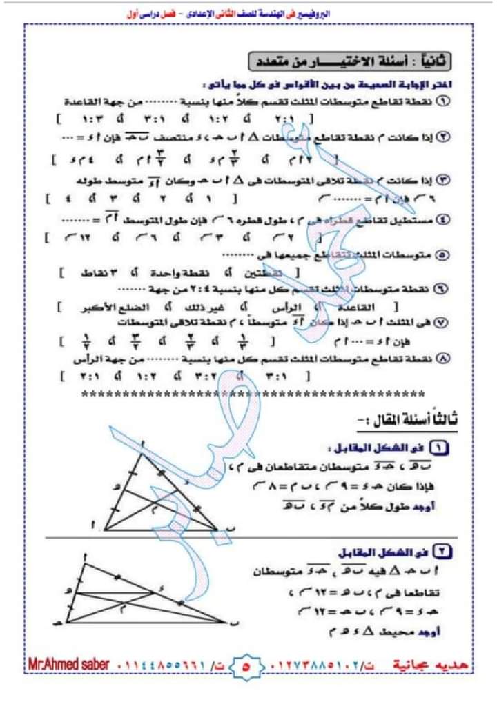مراجعة هندسة للصف الثاني الإعدادي ترم أول