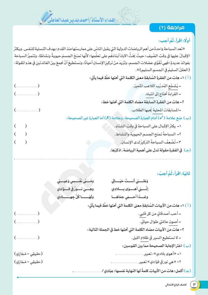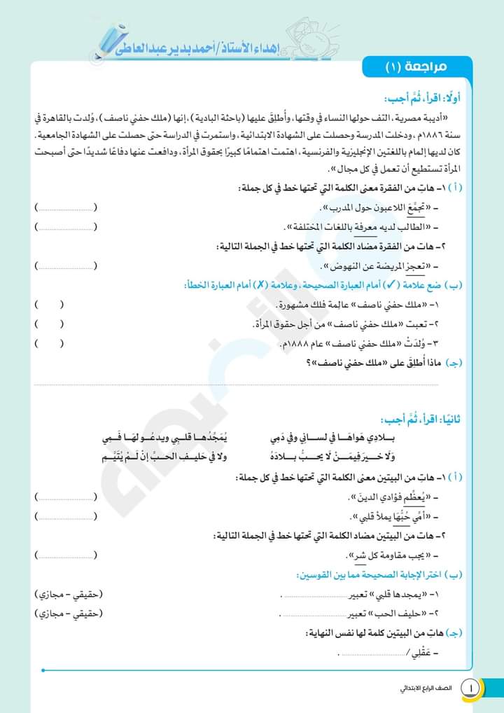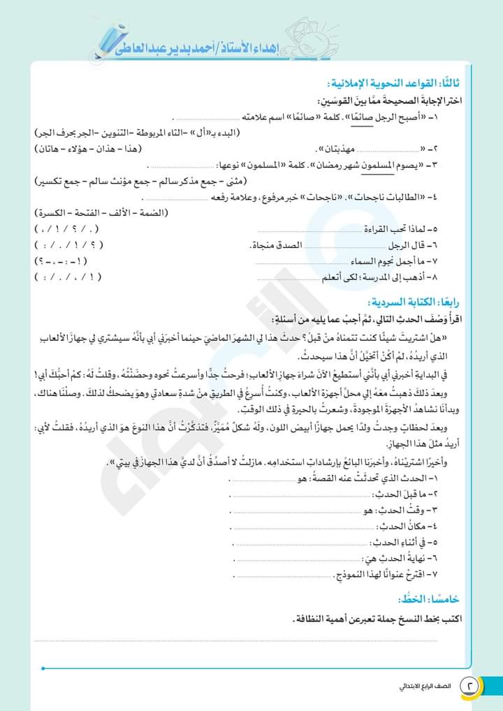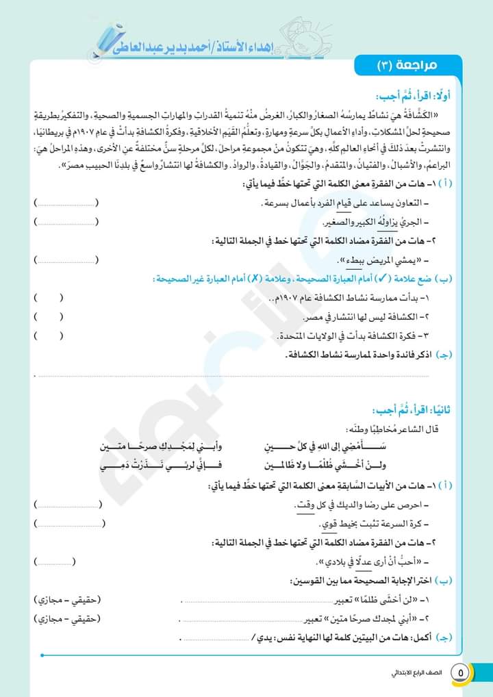 الوسوم: الصف الرابع, امتحانات الاضواء, رابعة ابتدائى, كتاب الاضواء, لغة عربية