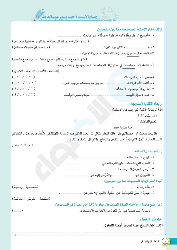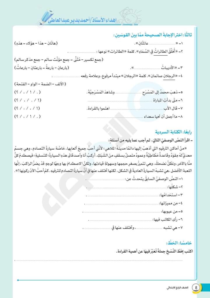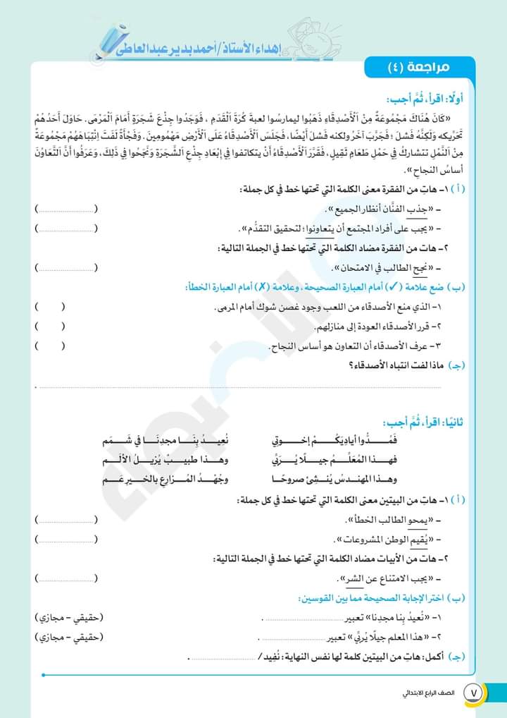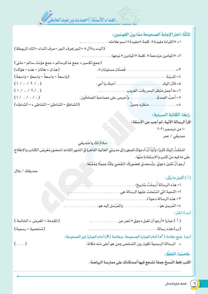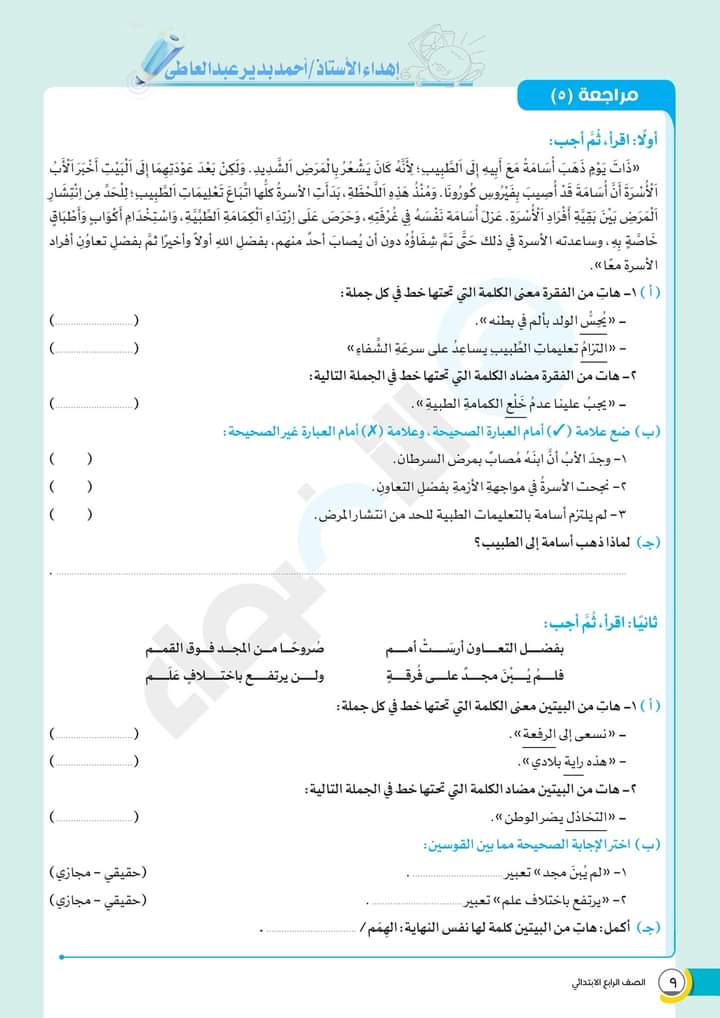 الوسوم: الصف الرابع, امتحانات الاضواء, رابعة ابتدائى, كتاب الاضواء, لغة عربية