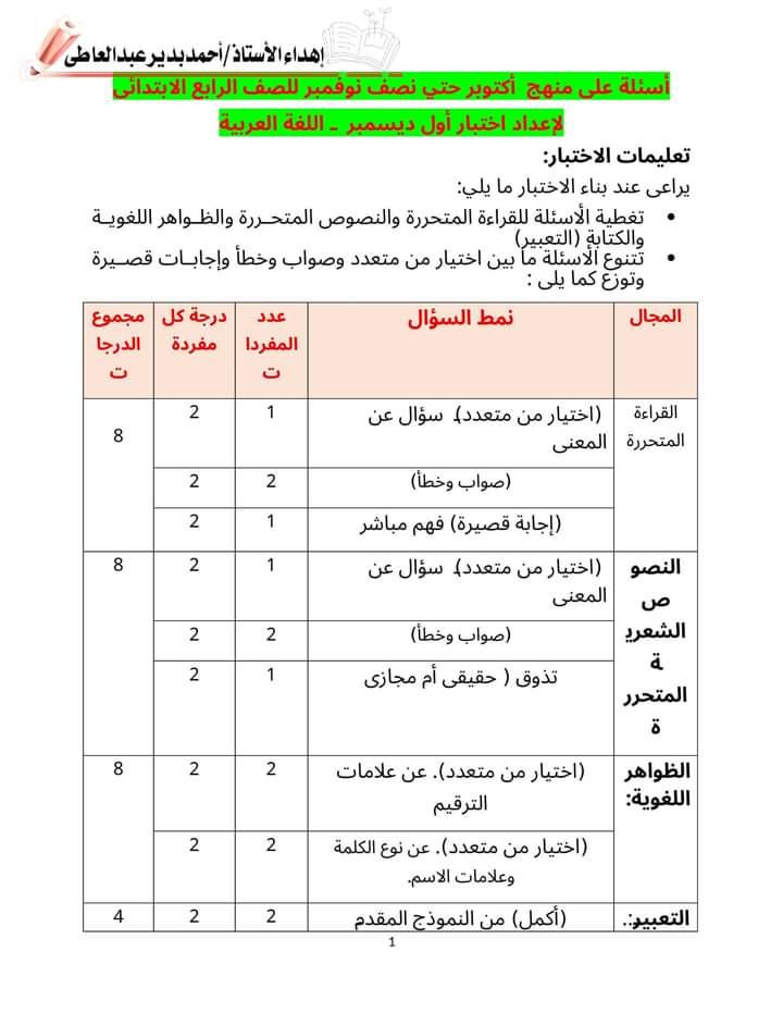 تقدم لكم منتديات كتاتيب للتعليم الإلكتروني نماذج الوزارة فى مادة اللغة العربية للصف الرابع الإبتدائى الترم الأول.
