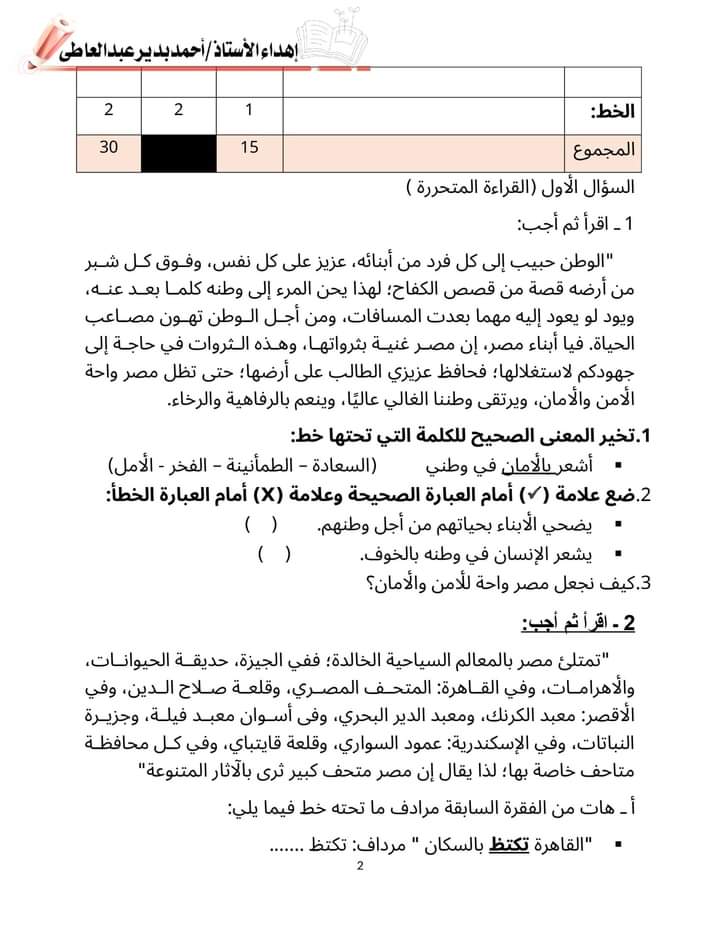 الرئيسية › المنتديات › منصة الطالب › نماذج الوزارة فى مادة اللغة العربية للصف الرابع الإبتدائى الترم الأول