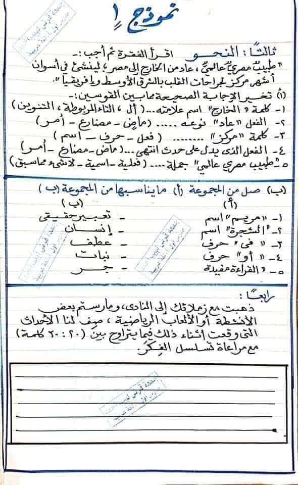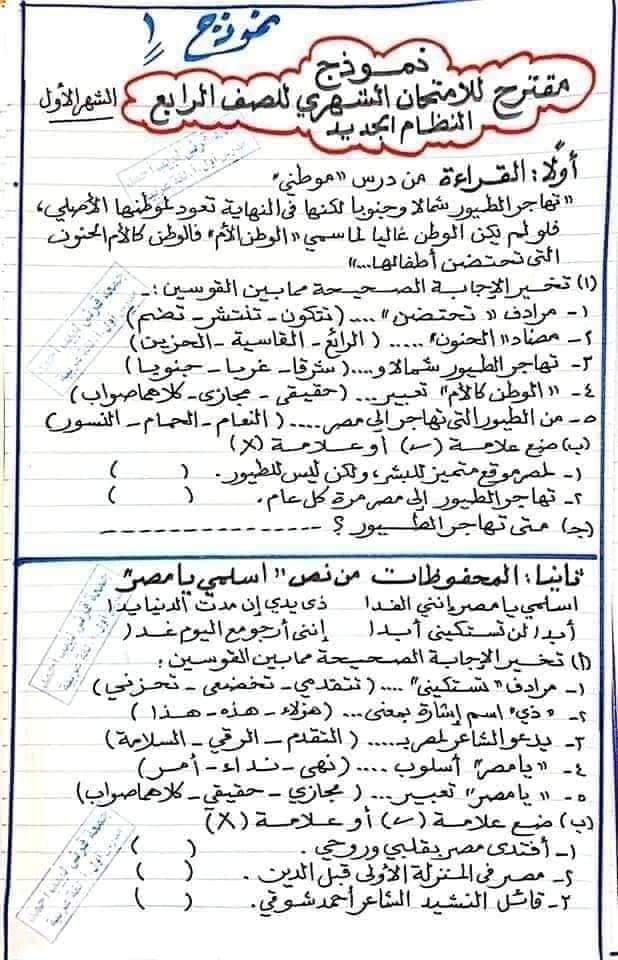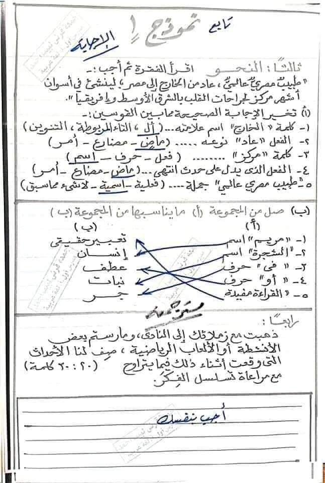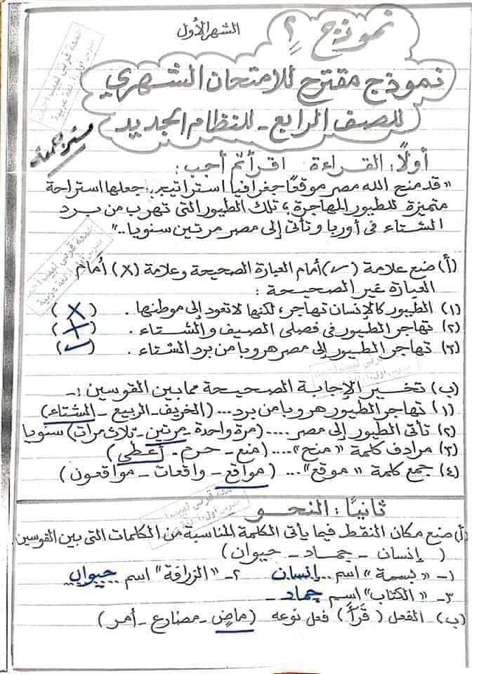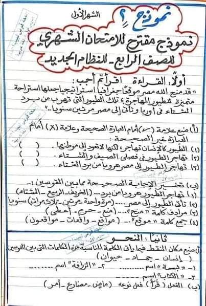 الوسوم: الص الرابع, اللغه العربيه, امتحان عربي, رابعه ابتدائي, نحو, نماذج امتحانات
