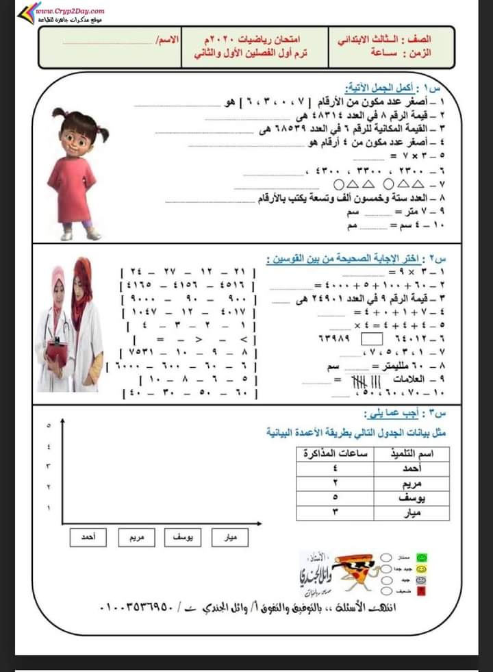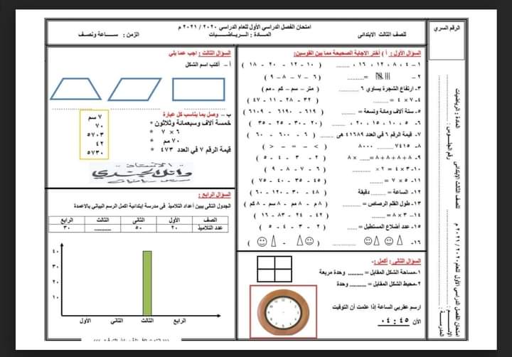 الوسوم: pdf, الابتدائي, الصف الثالث, تالته ابتدائي, مادة الرياضيات, نماذج امتحانات